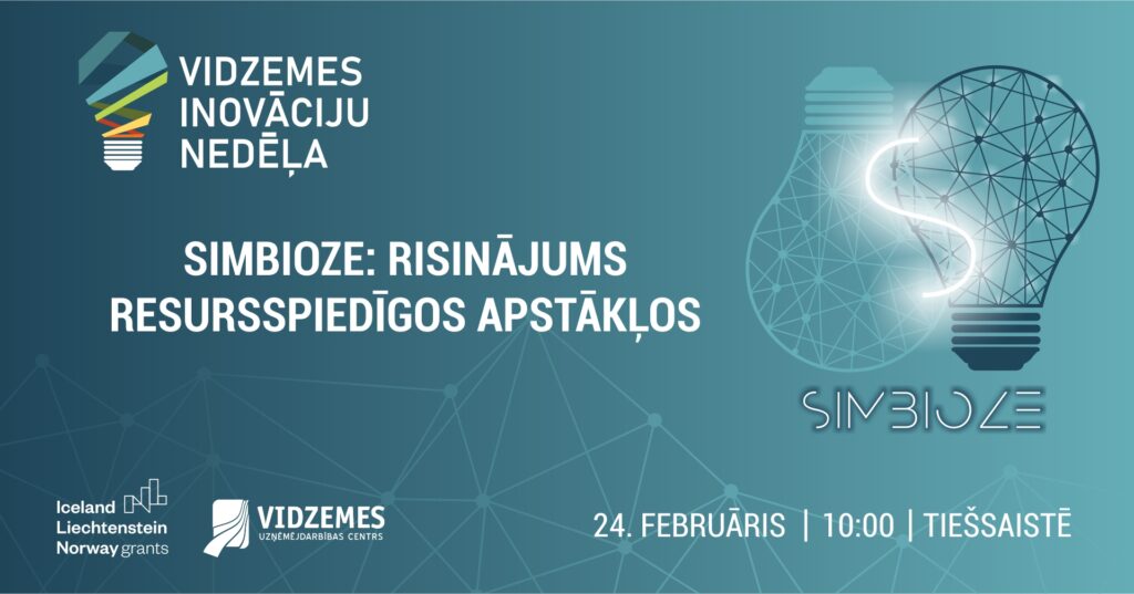 Konferenci “Simbioze: risinājums resursspiedīgos apstākļos” ceturtdien, 24. februārī, plkst. 10.00–13.15 varēs skatīties tiešraidē Vidzemes inovāciju nedēļas tīmekļvietnē innovation.vidzeme.lv , kur pieejama arī konferences programma un informācija par runātājiem.