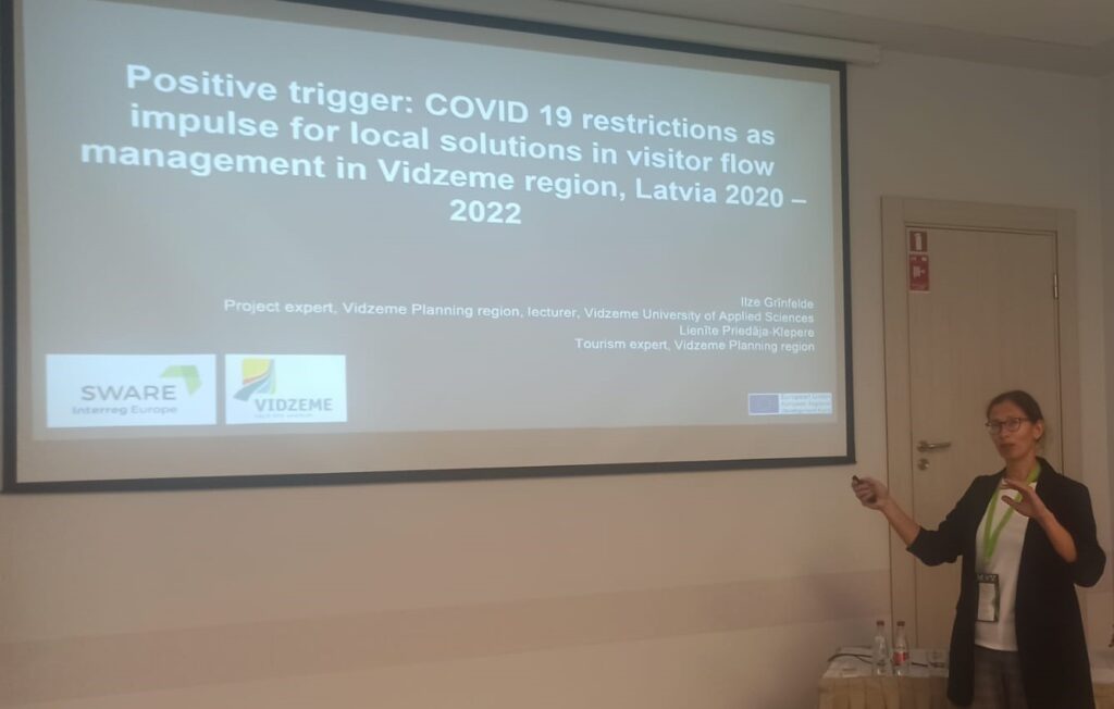 Šajā pasākumā piedalījās Vidzemes plānošanas reģiona projektu eksperte Ilze Grīnfelde, uzstājoties ar ziņojumu par projekta SWARE rezultātiem un vadot vienu no konferences darba sesijām. Ziņojumā eksperte akcentēja vietējās labās prakses kā atbildes reakciju COVID 19 pandēmijas radītajai negatīvajai ietekmei uz dabas mantojumu Vidzemē. Pēc prezentācijas konferences dalībnieki aktīvi uzdeva jautājumus un diskutēja tieši par vietēja mēroga labo prakšu nozīmi, dalīšanos ar šo pieredzi, kā arī labo prakšu pieredzes pielāgošanas iespējām un līdzīgu aktivitāšu ieviešanu citviet. Konferencē dzirdētais dalībniekos raisīja interesi par Interreg programmas labo prakšu datu bāzi.