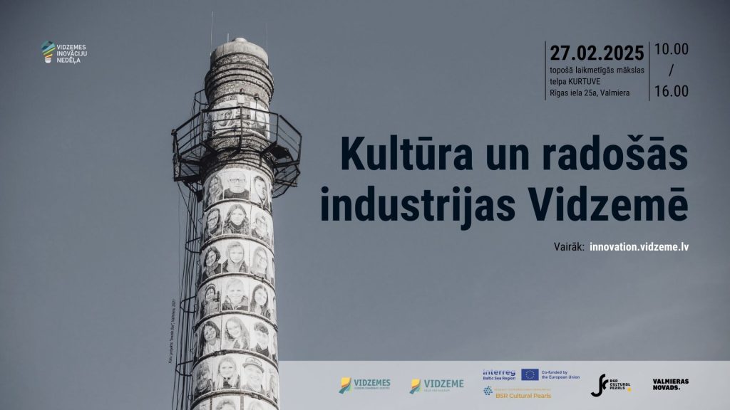 Ceturtdien, 27. februārī, topošajā laikmetīgās mākslas telpā “Kurtuve” (Rīgas iela 25a, Valmierā) no plkst. 10.00 līdz 16.00 notiks iedvesmas pasākums “Kultūra un radošās industrijas Vidzemē”. To organizē Vidzemes plānošanas reģions, Vidzemes uzņēmējdarbības centrs un Valmieras novada pašvaldība Vidzemes inovāciju nedēļas ietvaros.