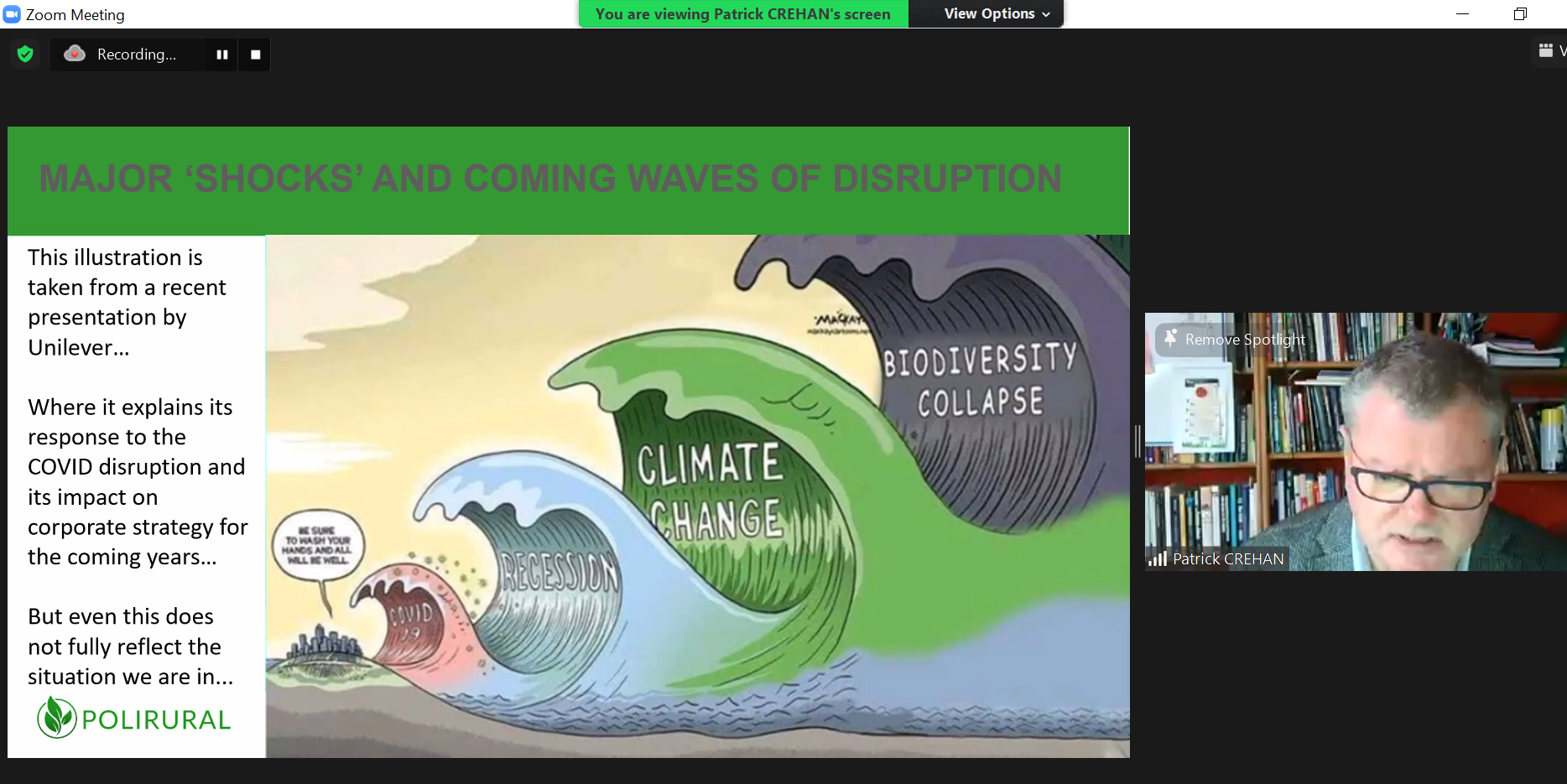 Patriks Crehans (Patrick Crehan), vadības konsultāciju uzņēmuma CKA dibinātājs (Brisele, Beļģija) savā prezentācijā stāstīja par globālajiem trendiem un Eiropas Savienības politiku, kas ir vērsta uz atbalstu vietējai attīstībai. Paradoksāli, ka trendi veidojas ilgākā laika periodā un nereti tie paslīd garām nepamanīti, taču to nozīme vietas attīstības plānošanā ir būtiska. Eksperts nākotnes paredzēšanu (foresight) kā instrumentu savā praksē, strādājot ar klientiem, izmanto jau vismaz 20 gadus.