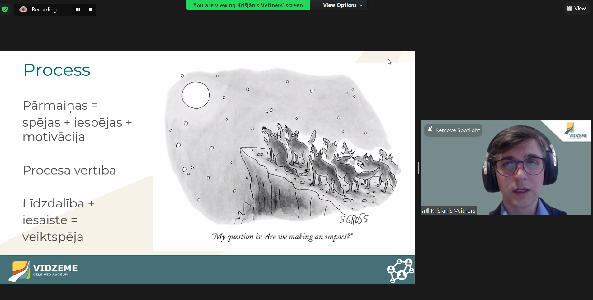 Novembrī Vidzemes plānošanas reģions organizēja informatīvu semināru, lai stiprinātu reģiona pašvaldību speciālistu zināšanas, ko tie varētu veiksmīgi lietot ikdienas darbā, strādājot ar attīstības jautājumiem. Seminārs guva plašu atsaucību, pulcējot teju 100 dalībniekus no visas Latvijas, kā arī tika saņemtas pozitīvas atsauksmes par ikdienas darbam noderīgu semināra saturu. Aicinām iepazīties ar dažām ekspertu norādēm un atziņām un piedāvājam iespēju noskatīties semināra video ierakstu.