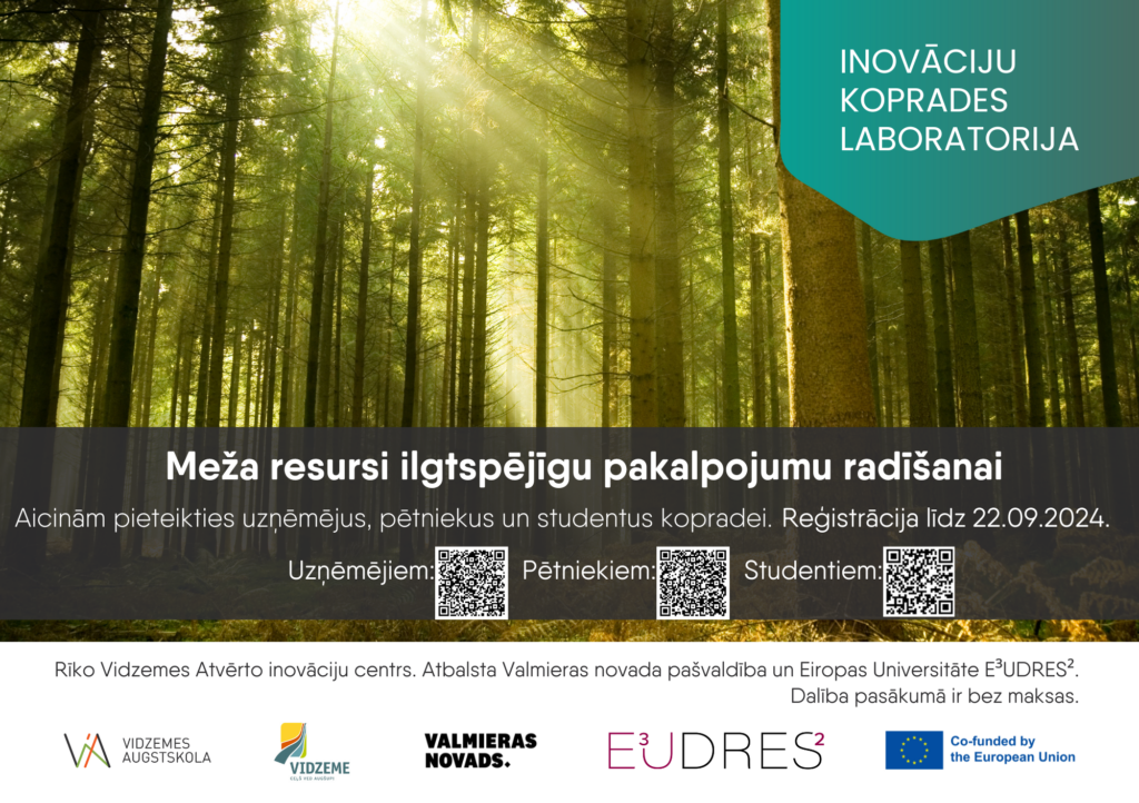 aicinam pieteikties petniekus uznemejus un studentus inovaciju koprades laboratorijai meza resursi ilgtspejigu pakalpojumu radisanai