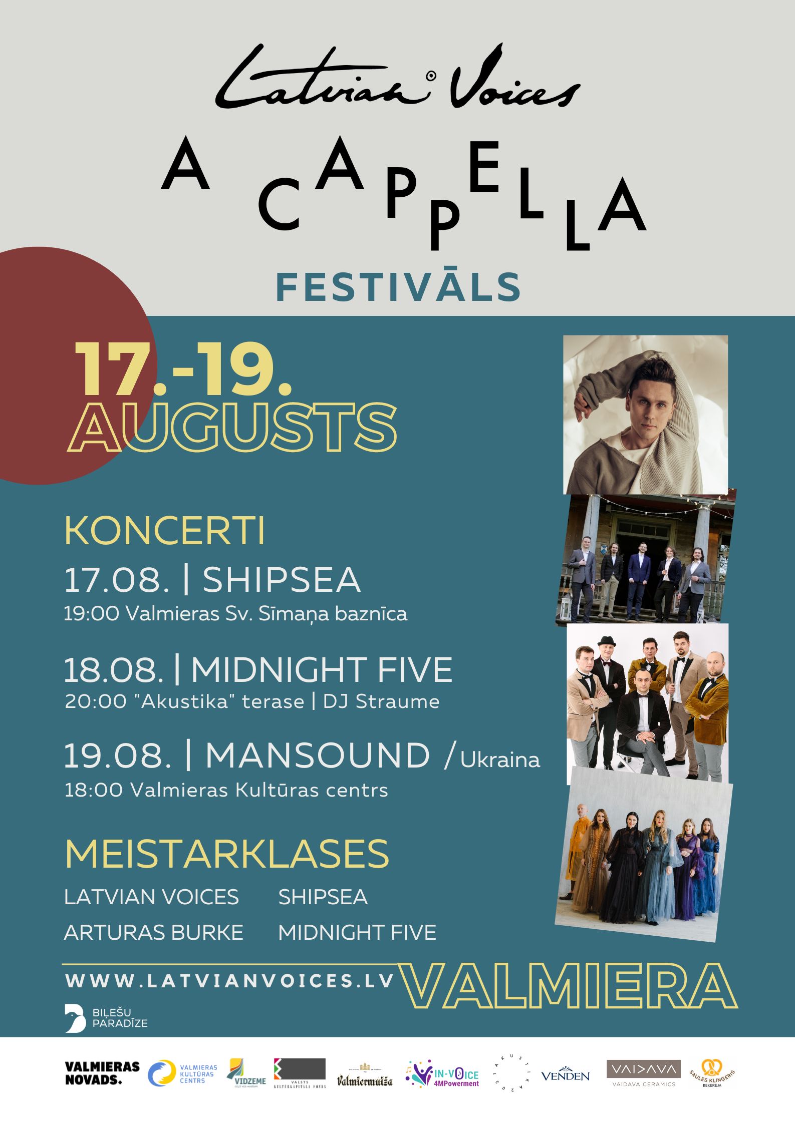 Šī gada 17.-19. augustā Valmieru ar vasaras meistarklasēm un septīto a cappella mūzikas festivālu pieskandinās vokālā grupa Latvian Voices. Festivāls ik gadu pulcē ansambļu dziedātājus, mūziķus, pedagogus, individuālos interesentus un a cappella mūzikas cienītājus.