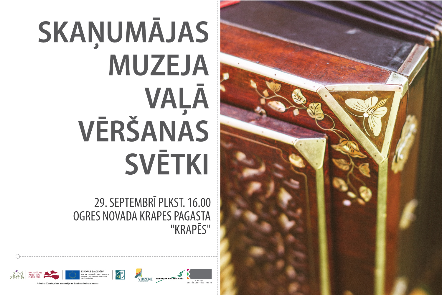 Lasīt vairākSkaņumājas muzeja vaļā vēršanas svētki notiks š.g. 29. septembrī no plkst 16.00 Ogres...