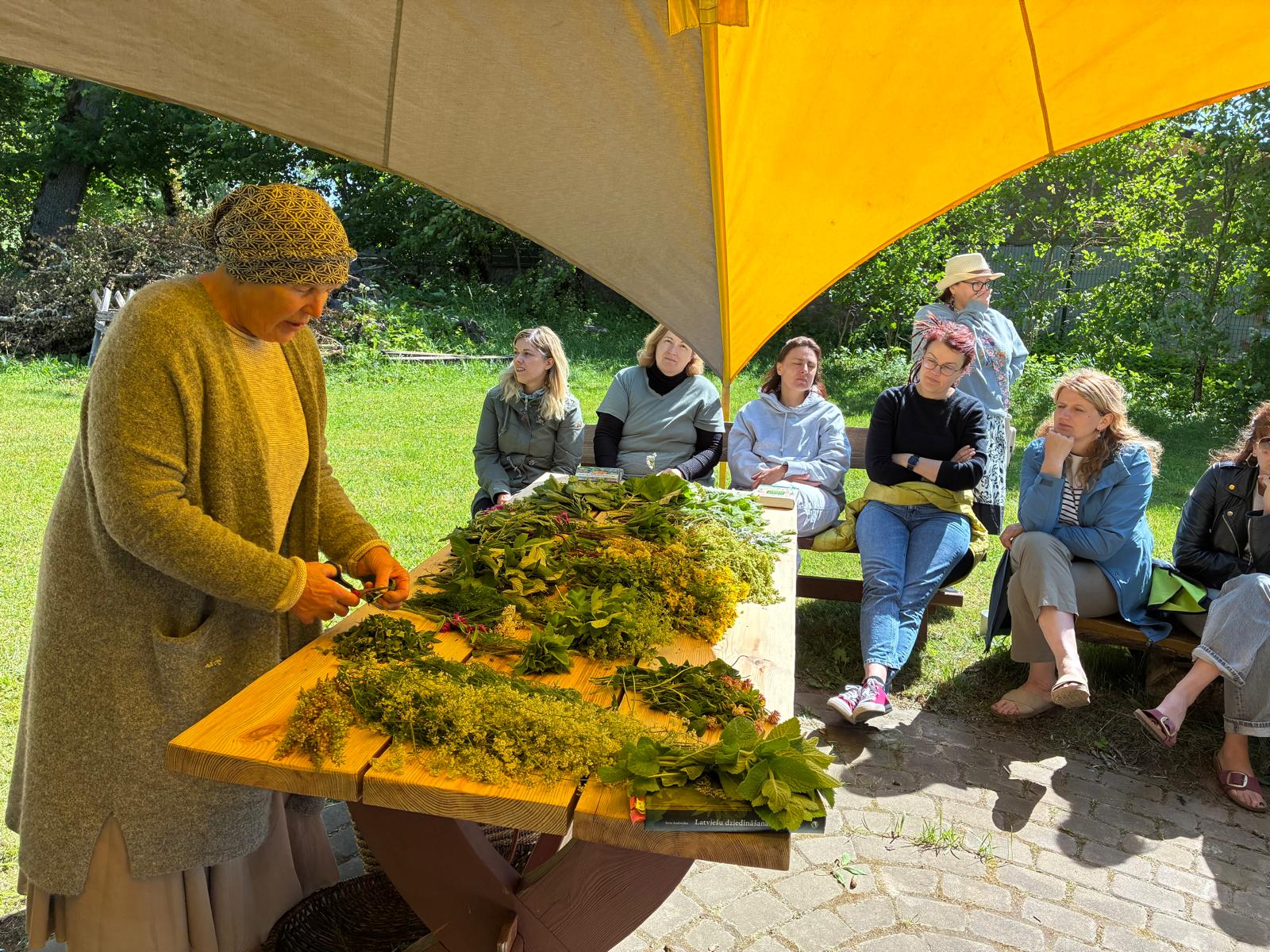 4. jūlijā pie nometnes dalībniekiem kopā ar lielu klēpi pļavas puķēm ieradās folkloras kopas “Dvīga” dalībniece, un “zāļu sieva” Inta Brikmane. Zāļzine Inta prot aizrautīgi stāstīt par katru vairāk vai mazāk zināmu veselības puķīti, kociņu vai saknīti, veltījot tiem spilgtus epitetus, piemēram, brīnumzāle lupstājs, smaržu karaliene lavanda, spēka zāle salvija un tā joprojām. Dabas māte dāsni dod visu veselīgai dzīvošanai. Ar pateicību pieņemot, prātīgi lietojot un rūpīgi kopjot, zeme ir devīga. Esam paši un arī citus aicinām būt saskaņā ar dabu. Protams, ar šādām tējām vien nopietnas slimības neizārstēt, bet zāļu sieva to lietošanu sauc par fitoprofilaksi. Augi var stiprināt imunitāti un palīdz nesaslimt. Tāpat ir ar savu dzimtas sakņu atpazīšanu, iepazīšanu. Kas mēs katrs esam? Vidzemē ir līvi vai lībi? Par šiem jautājumiem, veidojot veselīgo augu pušķus, diskutēja nometnes dalībnieki.