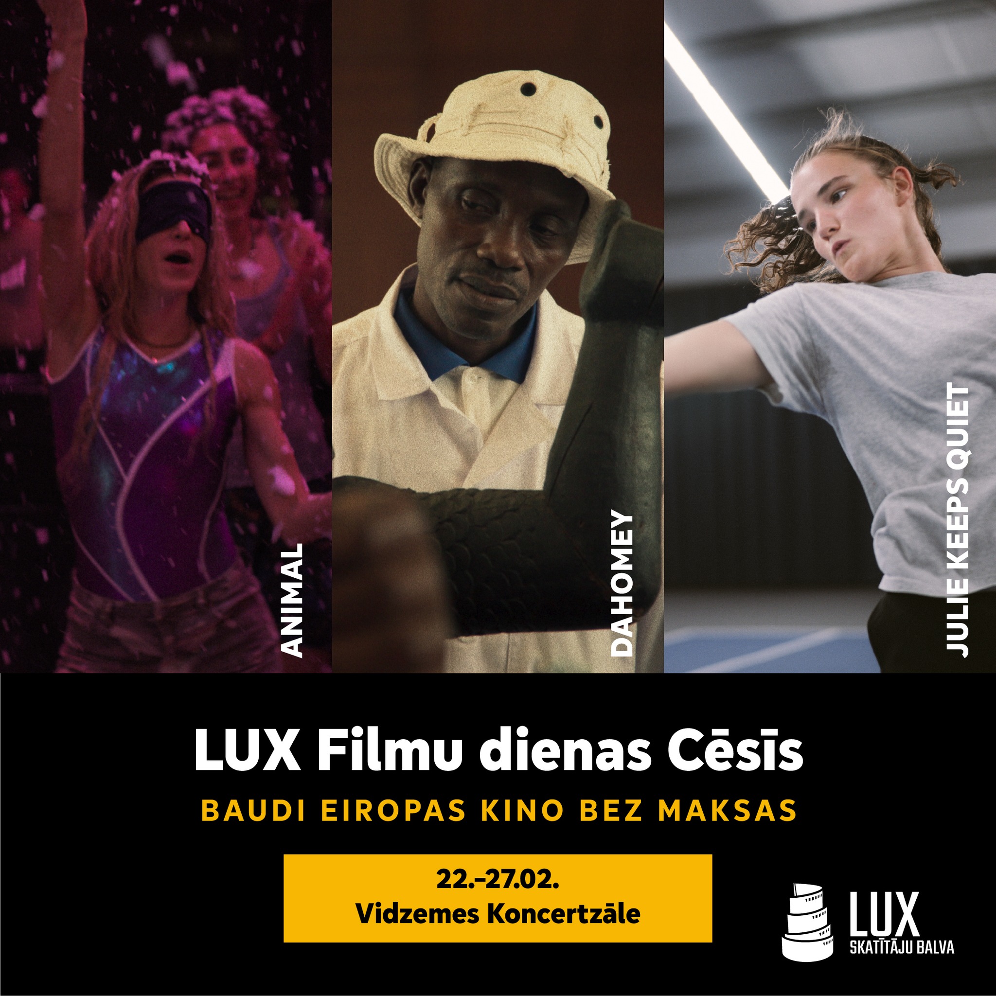 No 22. līdz 27. februārim Cēsīs norisināsies Eiropas Parlamenta LUX Filmu dienas. Vidzemes koncertzālē “Cēsis” būs iespēja bez maksas noskatīties trīs Eiropas filmas, kuras nominētas 2025. gada Eiropas Parlamenta LUX skatītāju balvai. Šī ir brīnišķīga iespēja kino mīļiem izbaudīt Eiropas kino. Interesentiem biļetēm ir jāpiesakās iepriekš. Mudinām neatlikt biļešu rezervāciju, jo vietu skaits zālē ir ierobežots.