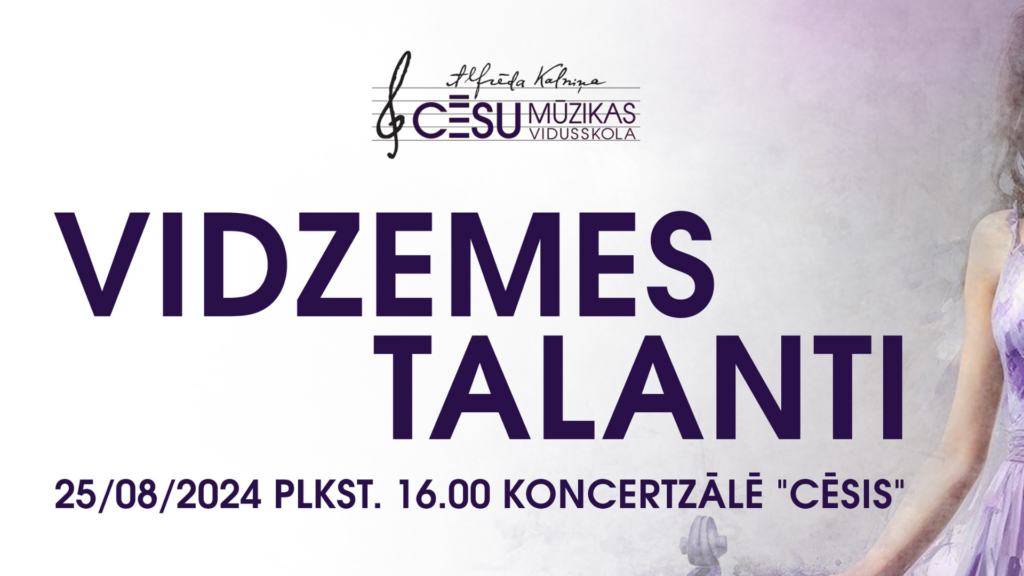 Alfrēda Kalniņa Cēsu Mūzikas vidusskola sadarbībā ar skolas atbalsta biedrību aicina apmeklēt Vidzemes reģiona mūzikas skolu talantīgāko audzēkņu un konkursu laureātu koncertu “Vidzemes Talanti.” Koncerts norisināsies 2024. gada 25. augustā plkst. 16.00 Koncertzāles “Cēsis” Lielajā zālē.