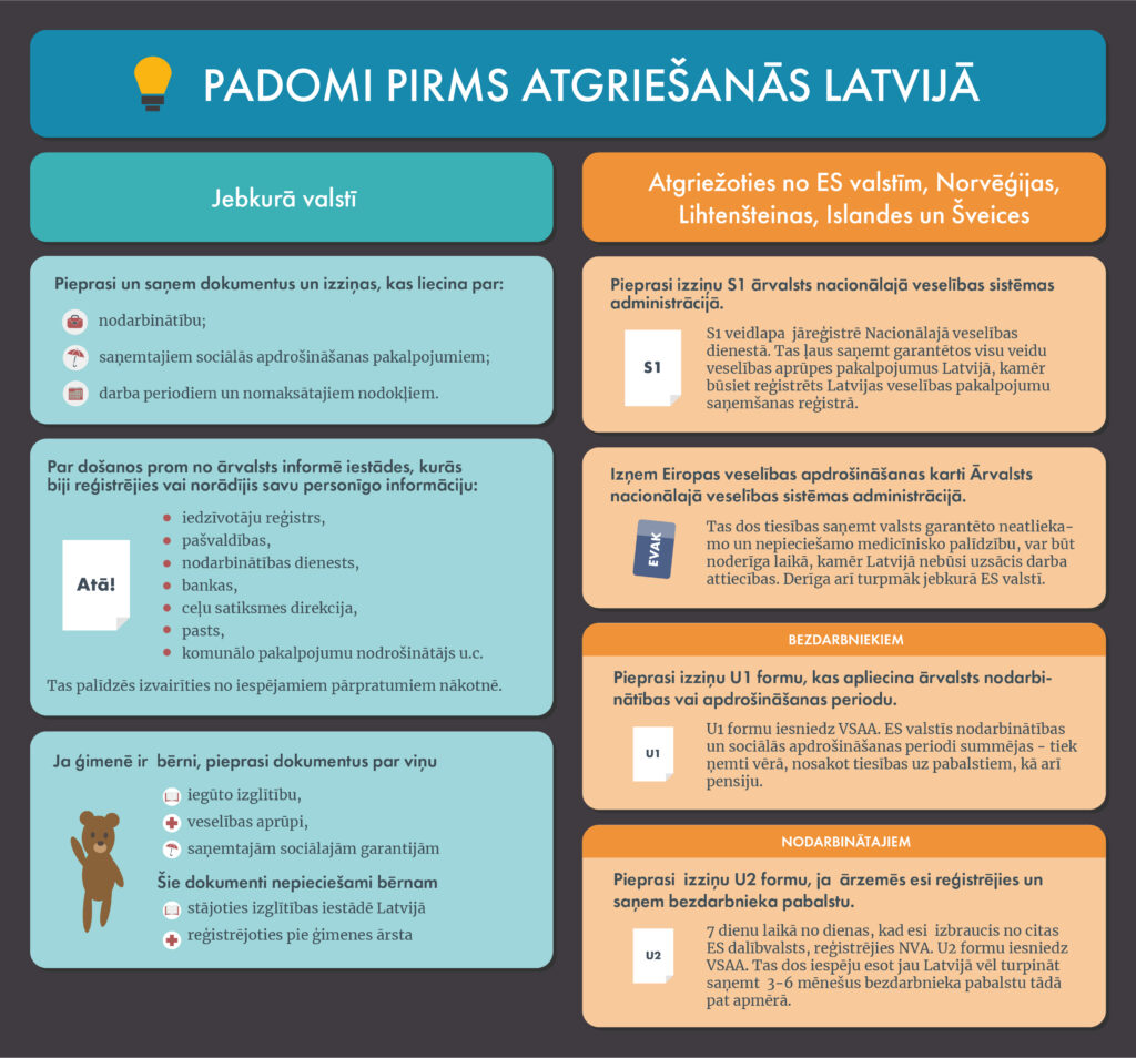 Esam apkopojuši informāciju par jautājumiem, kas varētu būt īpaši aktuāli īsi pirms vai tūlīt pēc atgriešanās uz dzīvi Latvijā.