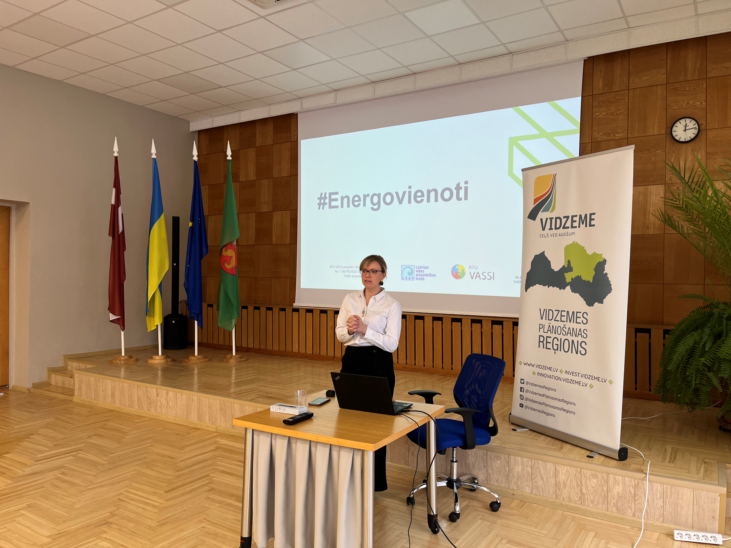I.Pakere aicināja klātesošās Vidzemes pašvaldības piedalīties RTU VASSI īstenotajā iniciatīvā “Energovienoti”, kurā VASSI zinātnieki cieši sadarbojas ar pašvaldībām, energopārvaldniekiem, daudzdzīvokļu namu vecākajiem, dzīvokļu un māju īpašniekiem, sniedzot praktiskus padomus un motivējot rīcībai, kas pakāpeniski ļaus samazināt izmaksas par siltumu un elektroenerģiju. Turklāt ar marķējumu «Energovienoti» tiek novērtēti uzņēmumi un organizācijas ar augstu energopratības līmeni, kuru lēmumi un rīcība ir labs piemērs citiem. Projekts “Energovienoti” (projekta Nr. 1-08/76/2022) tiek īstenots ar Latvijas Vides aizsardzības fonda atbalstu.