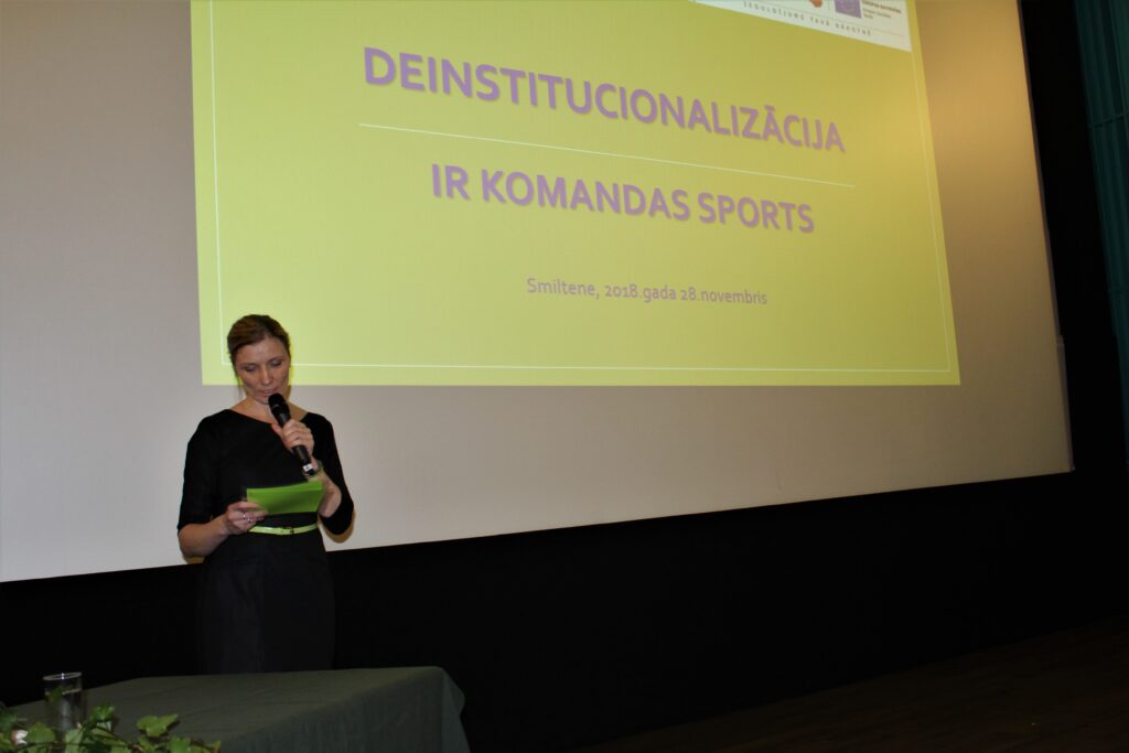 Šī gada 28.novembrī, Smiltenes pilsētas Kultūras centrā norisinājās konference “Deinstitucionalizācijas spēles noteikumi”. Atklājot konferenci, projekta “Vidzeme iekļauj” vadītāja Ina Miķelsone uzsvēra, ka deinstitucionalizācija ir komandas spēle un ir ļoti būtiski, lai visi iesaistītie spēlētāji izprastu spēles noteikumus, jo tikai tā projekts var izdoties.