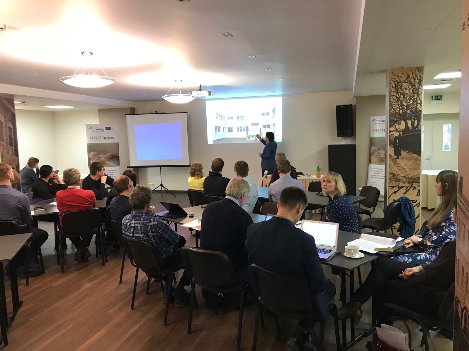 Lai iepazīstinātu “EFFECT4buildings” pārstāvjus ar Latvijā izmantotajām tehnoloģijām, veicot atjaunošanas darbus ēkās, Vidzemes plānošanas reģions kopā ar Cēsu, Smiltenes un Valmieras pašvaldībām organizēja pieredzes apmaiņas vizītes vairākās ēkās. Tostarp, Cēsu pilsētas Pastariņa sākumskolā, kurā 2018. gada janvārī tika pabeigti renovācijas darbi, kas tika veikti atbilstoši zemas enerģijas patēriņa ēkas principiem. Smiltenē Tehnisko projektu vadītājs, energopārvaldnieks Andris Jaunpetrovičs stāstīja par energopārvaldību Smiltenes novadā un ļāva ielūkoties nesen atklātajā daudzdzīvokļu mājā Smiltenē, Daugavas ielā 7a. Valmierā tika apskatīta četrstāvu sociālā dzīvojamā māja Ūdens ielā 2C, kas februārī tika nodota ekspluatācijā. Papildus bija iespēja ielūkoties nesen atvērtajā Valmieras peldbaseinā, kur ikdienā peldbaseina darbības nodrošināšanai tiek izmantota siltuma atgūšanas tehnoloģija.