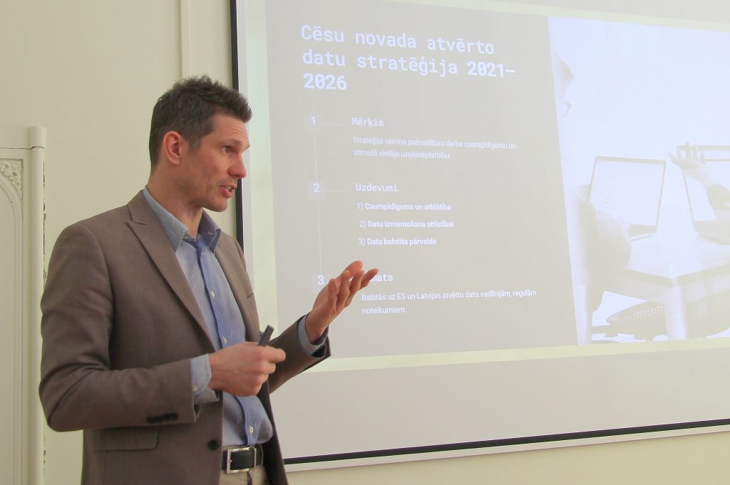 Aleksandrs Ļubinskis, Deputy Head of the Cēsis Digital Centre, presented the experience of Cēsis Municipality in developing and implementing its open data strategy. The strategy focuses on improving internal data management, defining responsibilities, and simplifying data collection and storage processes. “We need to understand what data we are already collecting, why we’re doing it, and how to use it for decision-making,” Ļubinskis said. He pointed out that one of the biggest challenges is ensuring timely data updates and stressed the importance of common data standards and regular practices across municipalities. The Cēsis experience, he noted, could serve as a model for others.