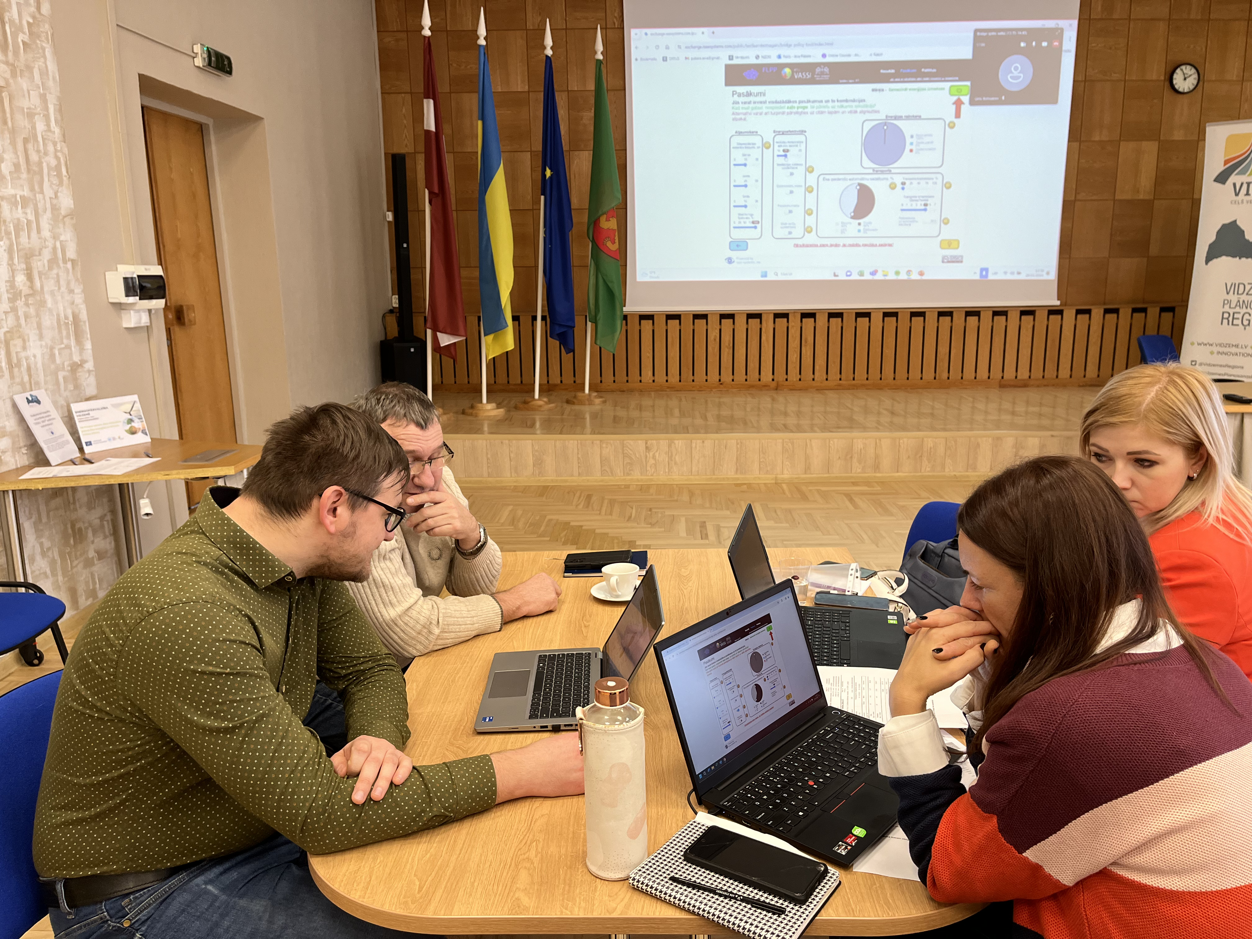 Each workshop includes theoretical lectures using the CEESEU project materials, inviting lecturers and energy experts in person, and organizing practical working groups to promote cooperation between local municipalities. In one of the working groups, municipal specialists looked at the maps of several Vidzeme cities and tried to identify areas sensitive to climate change. More than 30 solutions were evaluated from other countries, mainly from Romania and Hungary, which can help prevent flood risks and the formation of heat islands more successfully.
