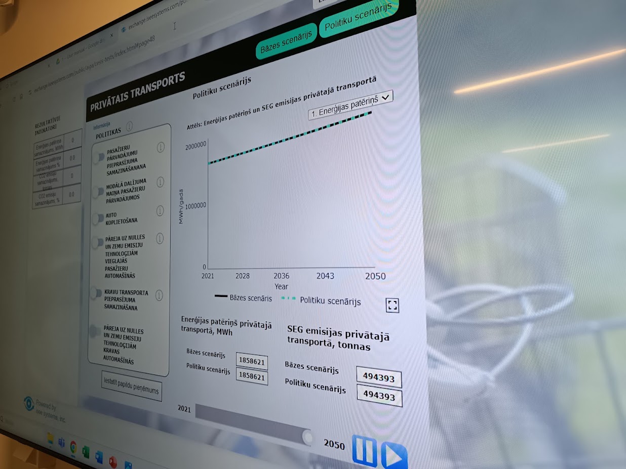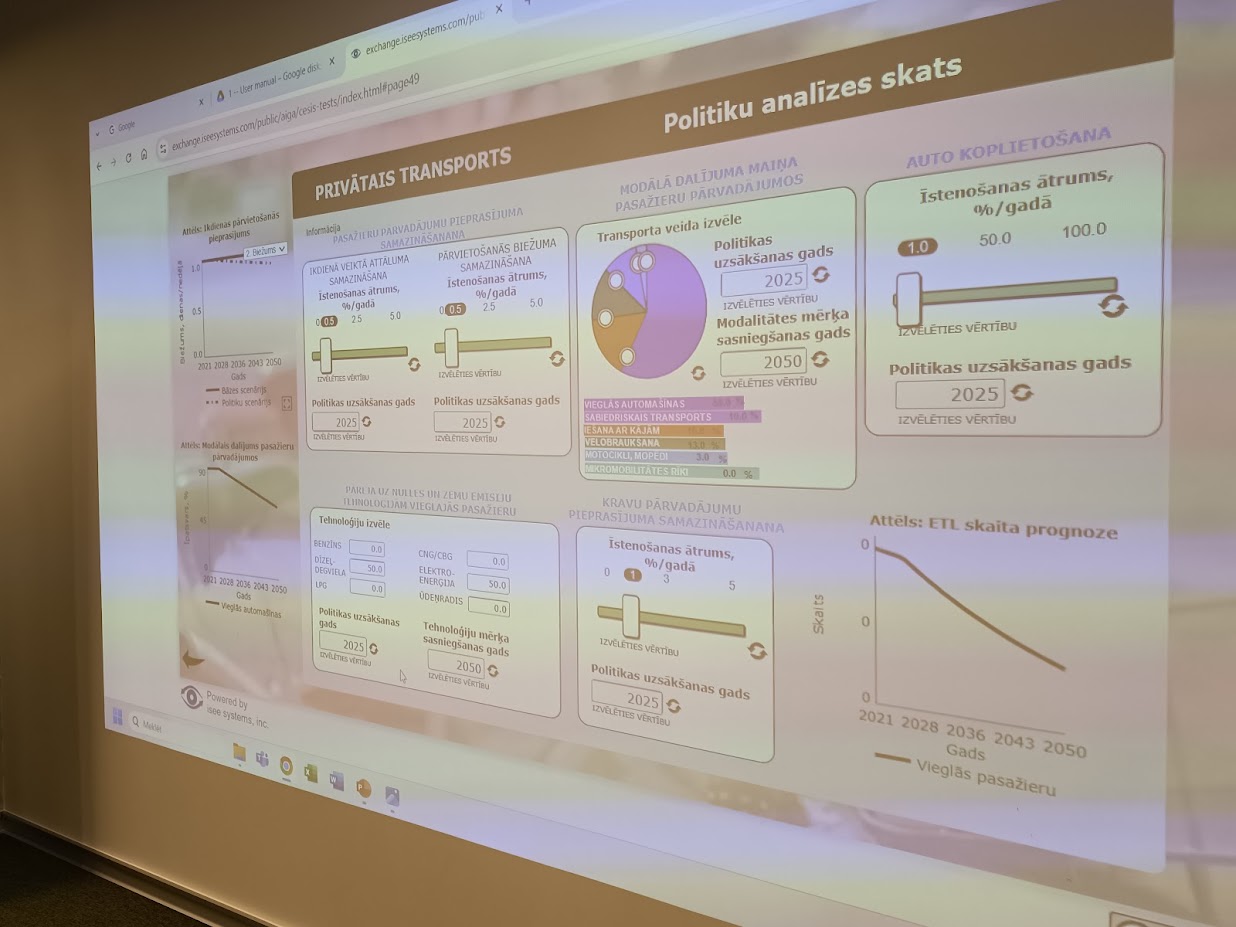Associate Professor Aiga Barisa from Riga Technical University introduced the CommitClimate simulator, developed under the Interreg BSR project. This tool helps municipalities evaluate current CO2 emissions and predict the impact of various policy scenarios. As Professor Barisa explained, the simulator provides clear insights into the total emission reductions achievable in tons, as well as the consequences of delayed decision-making. Using system dynamics modeling, the simulator operates with minimal input data, leveraging national and centralized datasets to deliver precise results. It not only calculates emissions but also analyzes the impact of policies and other factors on overall outcomes, helping municipalities draft effective climate neutrality plans. This is especially critical for the transport sector, where emissions have a significant impact, yet data on mobility and logistics is often lacking.