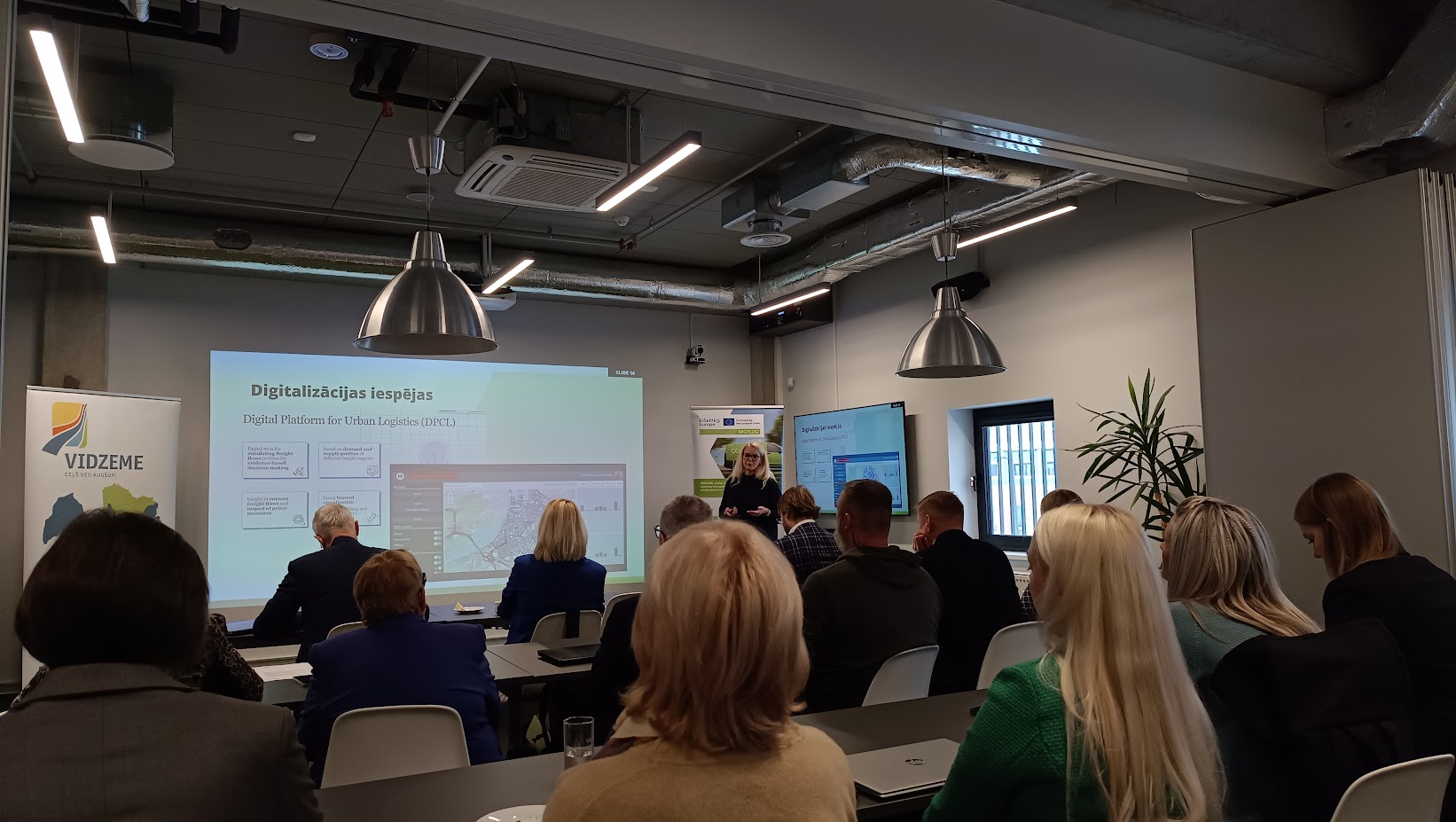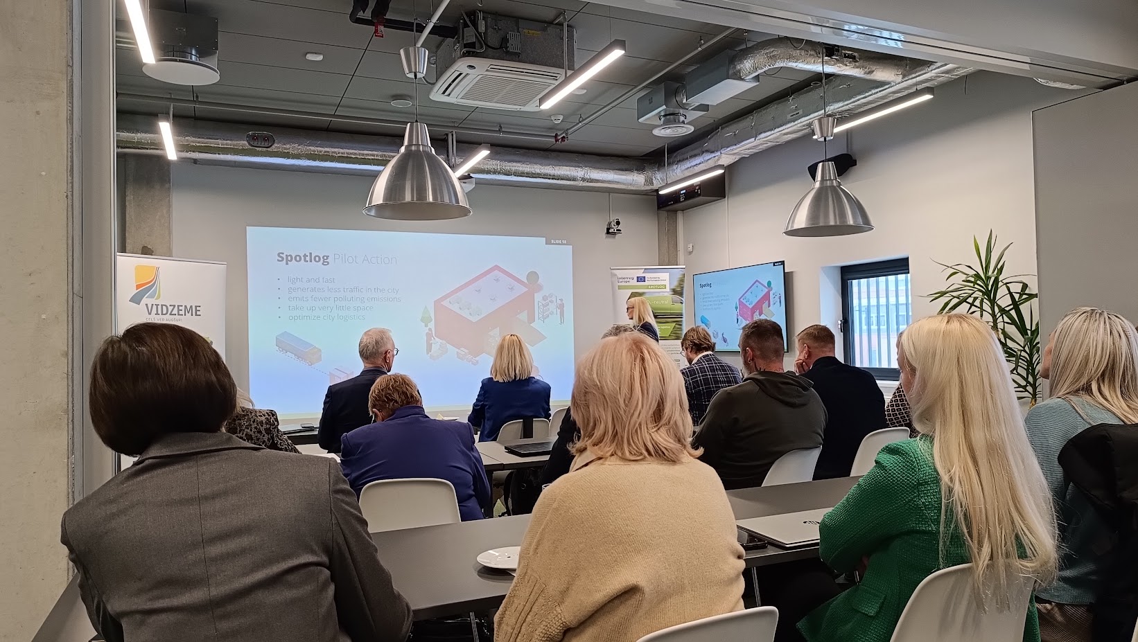 During the seminar, Pīpkalēja presented the SPOTLOG project, which aims to develop green and socially responsible logistics systems, reduce carbon emissions, and optimize resource use. She emphasized the importance of enhancing regional policies and cross-sector collaboration for sustainable logistics. The project also showcased effective innovations, such as digital twin technologies, shared mobility services, and innovative delivery models, which significantly reduce emissions and operational costs. The project proposes improvements to regional policy instruments to promote carbon-neutral mobility and inclusive logistics, with a particular focus on the need for Vidzeme’s regional development program to address sustainable urban logistics.