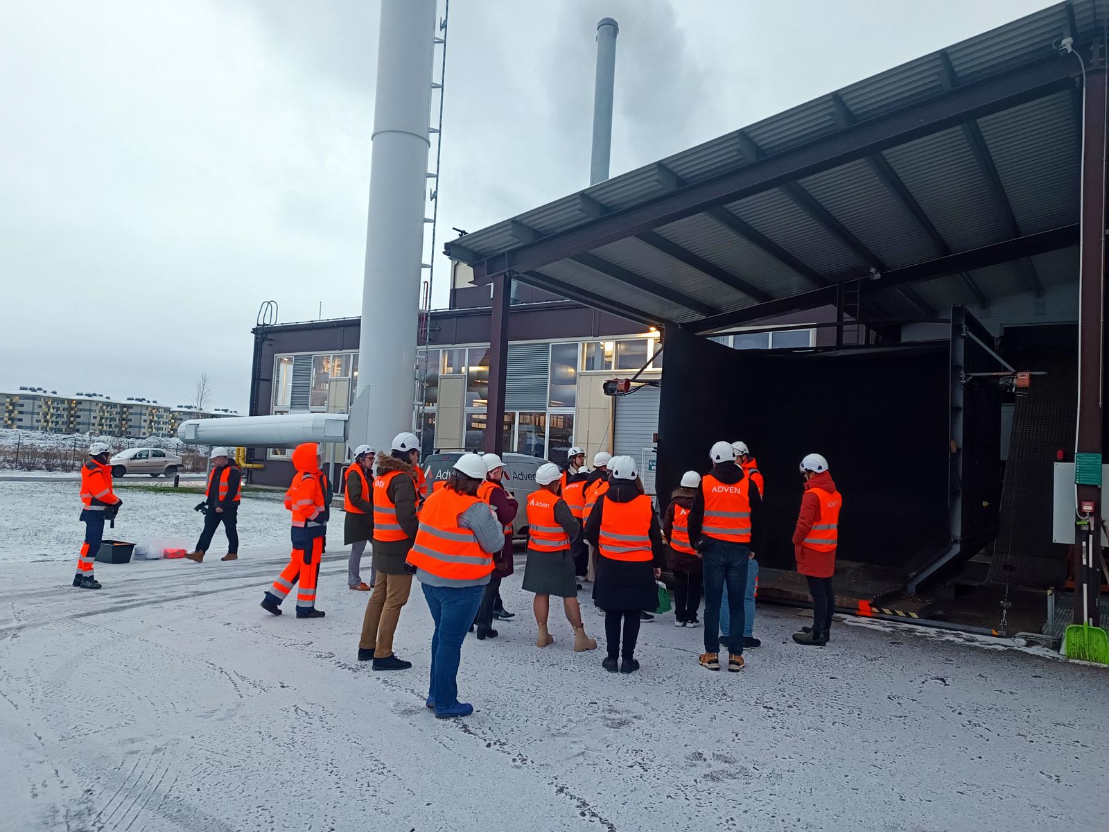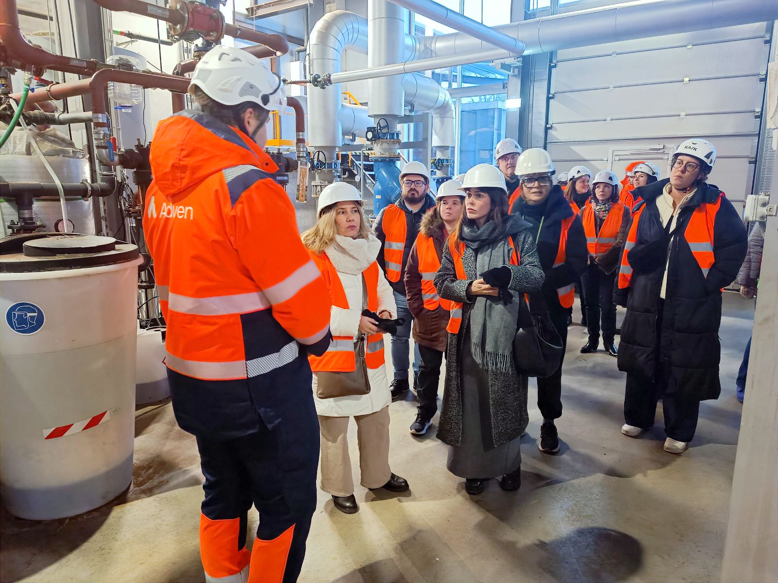 Meeting participants visited the Valmiera biomass boiler house, located on Dakstiņu Street, where they observed efficient and fully automated heating processes. Commissioned in 2020, the facility includes a 9 MW biomass boiler and a 1.5 MW flue gas condensation economizer, producing up to 93% of the heat supplied to the right bank of the Gauja River in Valmiera.