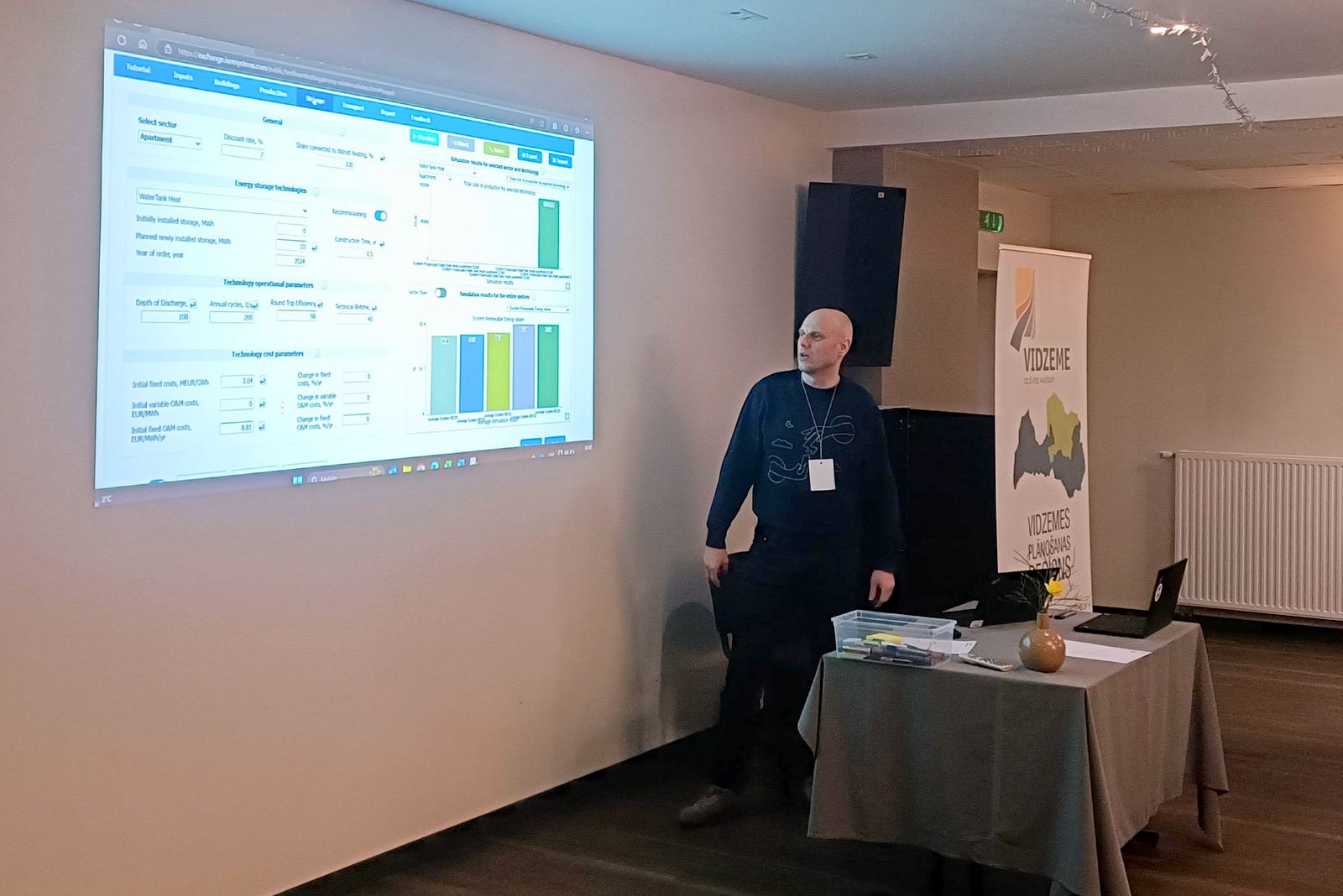 To deepen understanding, participants engaged in a practical exercise using a simulation tool developed by RTU. This tool allowed users to model different LTDH implementation scenarios, analyzing factors such as heat source selection, network configuration, infrastructure investment, and financial models and their impact on long-term system efficiency and costs.