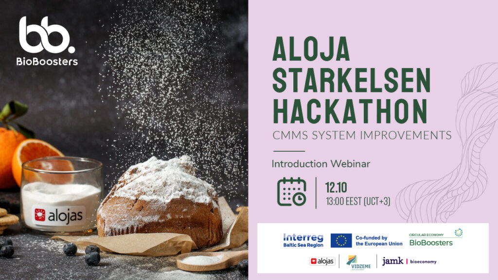 As part of the Baltic Sea region project “BioBoosters”, Vidzeme Planning region in cooperation with “Aloja Starkelsen”Ltd. invites technology companies, IT product managers and planners, logistics, warehouse and production facilities service and planning specialists, student teams and researchers to participate in the informative webinar of hackathon challenge call, which will take place on October 12.