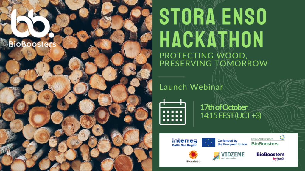 As part of the Baltic Sea Region project “BioBoosters”, Vidzeme Planning Region in cooperation with Stora Enso invites SMEs, start-ups, research institutes, sustainable product developers, educational institutions, forestry experts, experts in sustainability and resource utilization and other actors interested in solutions for wood industry to participate in the Hackathon challenge introduction webinar, which will take place on October 17.