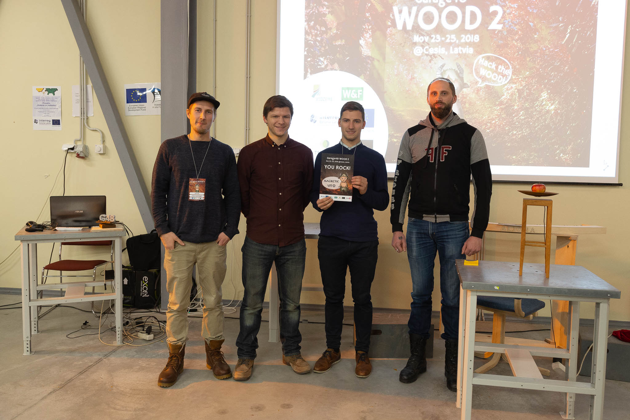 Hakatona noslēgumā dalībnieki prezentēja izstrādātos prototipus žūrijai, kas lēma par pirmo trīs vietu ieguvējiem. Pirmo vietu saņēma projekts ar nosaukumu “Dacha” – specializēta dizaina konteinerā pārvadājama saliekama koka māja. Otrajai vietai tika nominēta koka karkasa CNC iekārta, savukārt trešo vietu ieguva projekts “MLO” – magnētiskā lauka ietekmē levitējoša koka bļoda, kas izmantojama kā interjera elements.