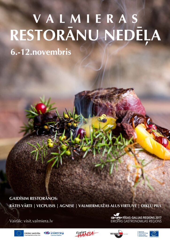Jau otro reizi Valmiera aicinās uz Restorānu nedēļu, apmeklētājus iepriecinot ar seno garšu piedāvājumu mūsdienīgā izpildījumā. Restorānu nedēļa šoruden notiks no 6. novembra līdz 12. novembrim, un tā tiek rīkota projekta HANSA un aktivitāšu kopuma “Eiropas Gastronomijas reģions 2017” ietvaros.