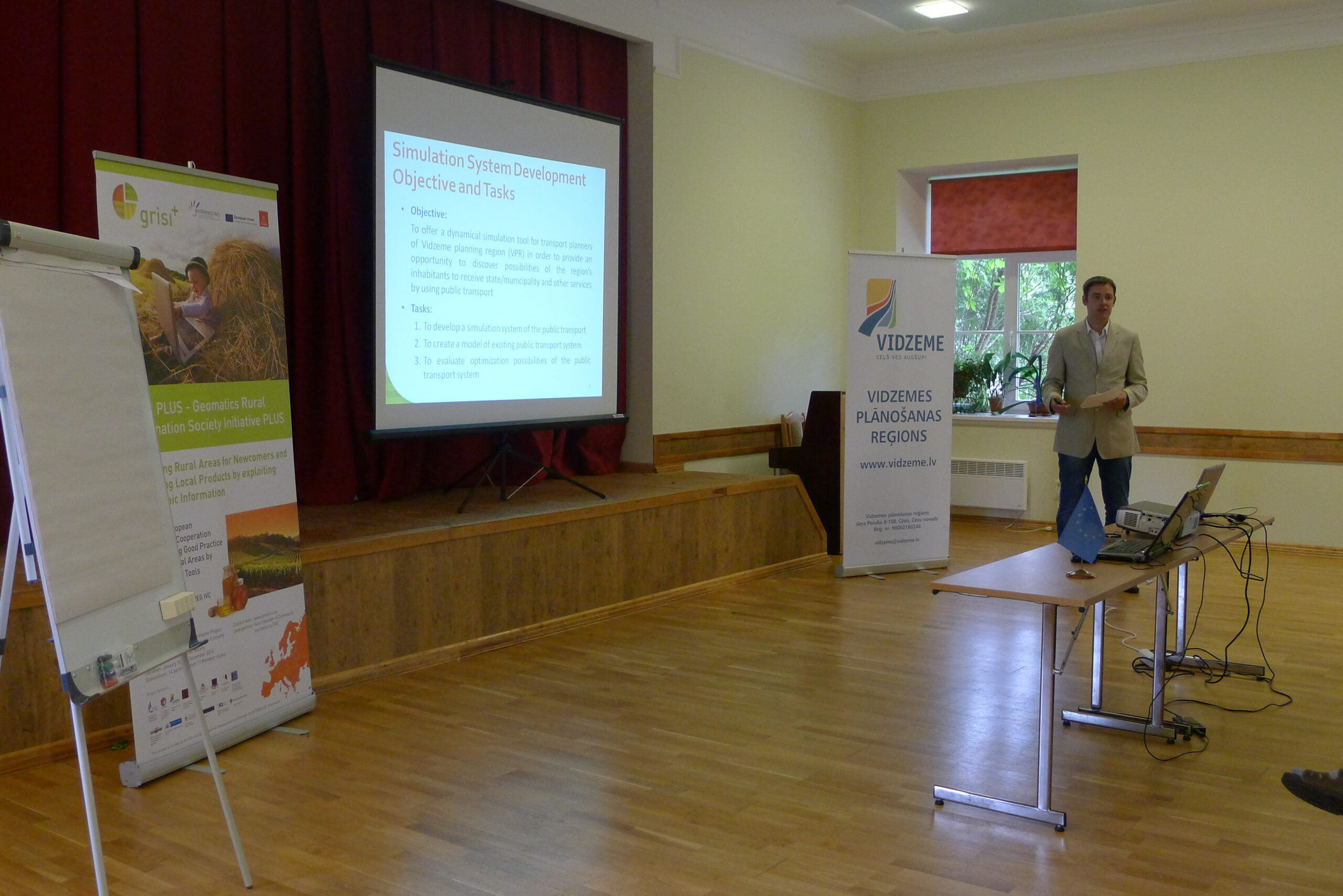 12. jūlijā ārzemju viesi Vidzemē iepazinās ar reģiona labajiem piemēriem ģeomātikas jomā, kur viens no rīkiem ir ģeogrāfiskās informācijas sistēmas (ĢIS). Par Kocēnu novada domē izveidoto telpiskās attīstības plānošanas sistēmu pastāstīja „SunGis” pārstāvis Pēteris Brūns. Savukārt ar Vidzemes reģiona sabiedriskā transporta modelēšanas sistēmu iepazīstināja viens no tās izveidotājiem, profesors Arnis Lektauers. Pēc semināra projekta partneri apmeklēja Amatciemu, kur uzzināja, kā, izmantojot ģeogrāfiskās informācijas sistēmu, padarīt lauku teritoriju pievilcīgu iedzīvotājiem.