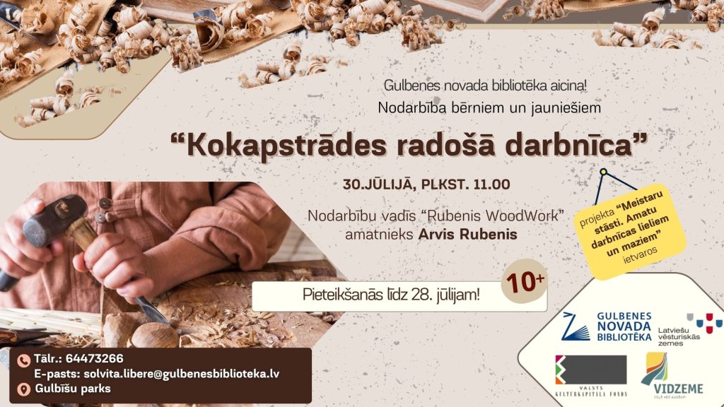Lai veicinātu amatniecības tradīciju saglabāšanu un popularizēšanu, Gulbenes novada bibliotēka īsteno projektu “Meistaru stāsti. Amatu darbnīcas lieliem un maziem.” Vai bibliotēka var būt starpnieks starp amatniekiem un bērniem, jauniešiem? Var!