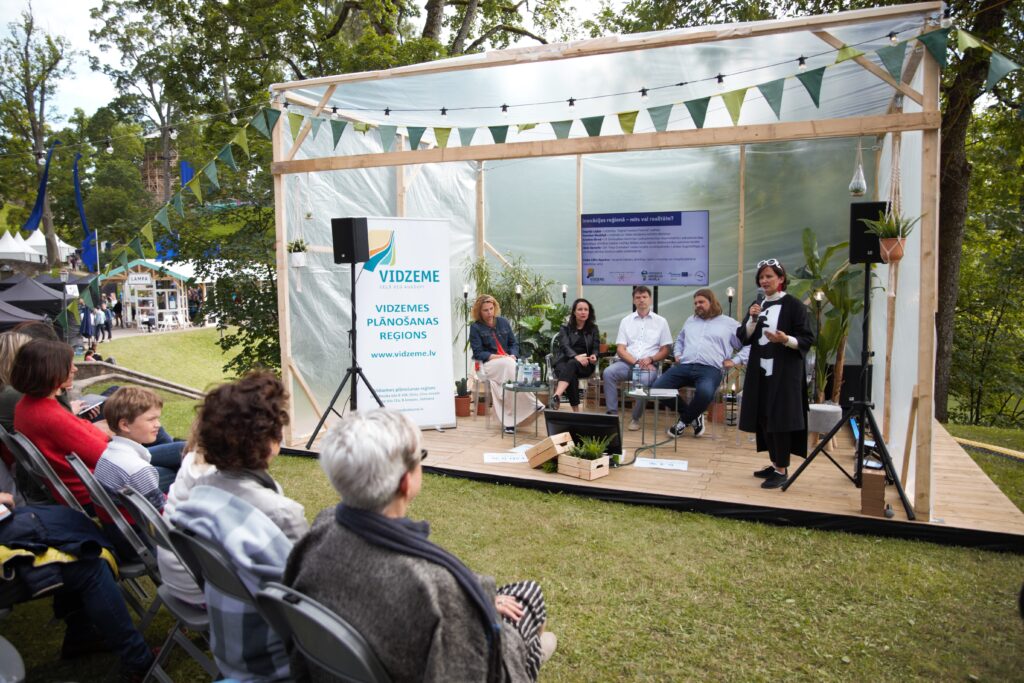 Pagājušās nedēļas nogalē Vidzemes plānošanas reģions piedalījās sarunu festivālā “Lampa” ar diskusiju “Inovācijas reģionā – mīts vai realitāte?”, turpinot gada sākumā Vidzemes Inovāciju nedēļā aizsākto sarunu tēmu par inovācijām un to nozīmi reģionā. Diskusijā piedalījās Latvijā zināmi inovāciju procesa eksperti (Gundars Skudriņš (Vides risinājumu institūts), Jānis Garančs, (SIA “Aloja-Starkelsen”), Dagnija Lejiņa, (Digital Freedom Festival un Reputācijas vadības aģentūras “Lejiņa un Šleiers”), Kristīne Sirmā (LR Zemkopības ministrija, vienlaikus arī Baltijas jūras reģiona Bioekonomikas padomes locekle), diskusiju vadīja Lilita Sparāne (eksperte klasteru attīstības, radošo industriju un starpdisciplīnāras sadarbības jomā).