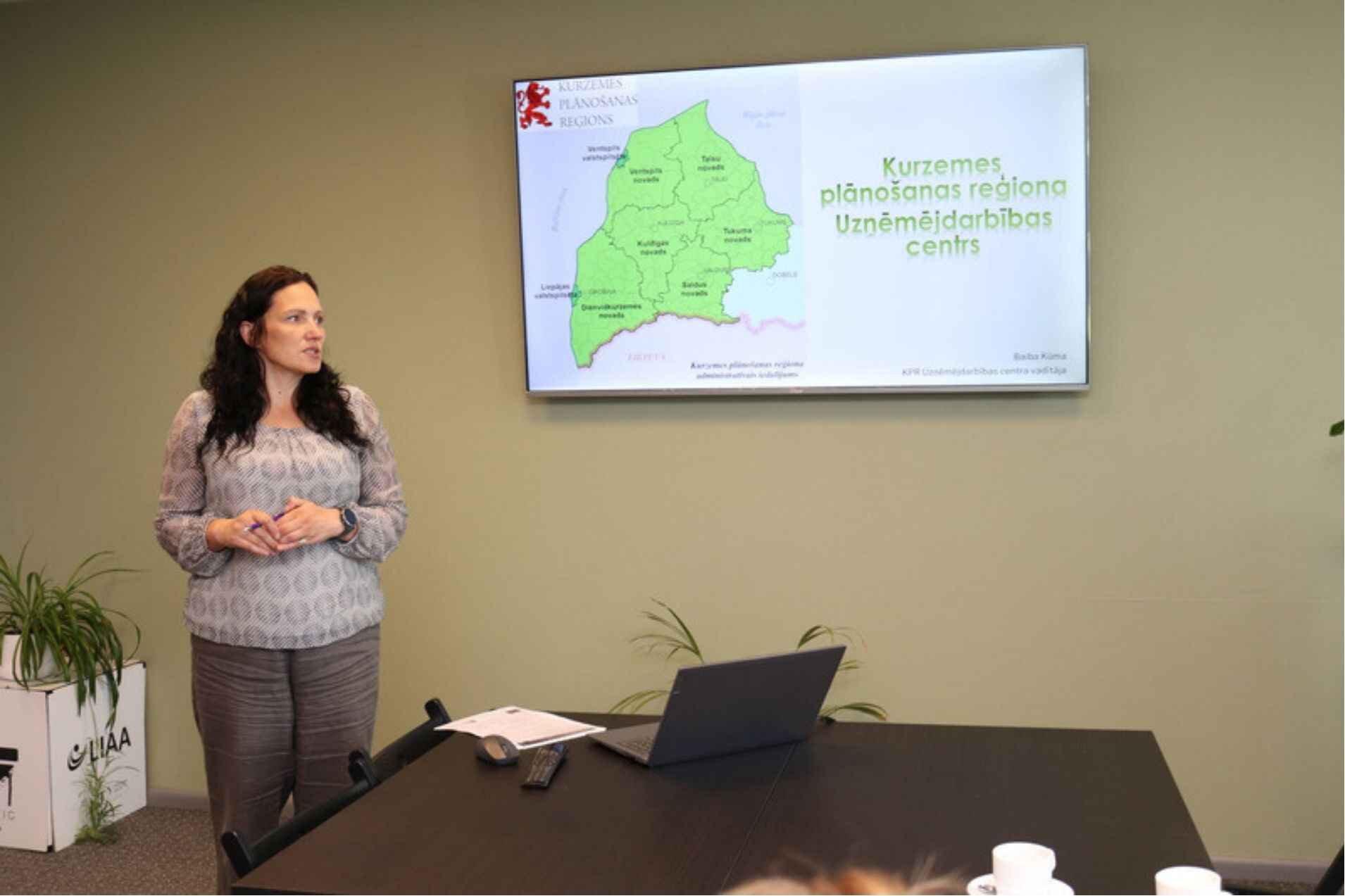 Apmaiņas brauciens tika uzsākts ar viesošanos Kurzemes reģiona Uzņēmējdarbības centrā, kur tā vadītāja Baiba Kūma iepazīstināja ar centra galvenajiem darbības virzieniem, aktivitātēm, uzņēmējdarbības atbalsta veiksmes stāstiem, kā arī īstenotajiem un aktīvajiem projektiem. Dienai turpinoties, tika iepazītas pagājušajā gadā izveidotās koprades telpas “Saldus KOPtelpa”, kas kalpo kā vieta, kur rosināt satikšanos un īstenot idejas starp pašvaldību, uzņēmējiem un iedzīvotājiem. Šeit Saldus novada pašvaldības starptautisko sadarbības projektu vadītāja Lana Radčenko iepazīstināja ar īstenotajām idejām, kā arī pastāstīja par sadarbību ar Liepājas biznesa inkubatora atbalsta vienību, kā rezultātā izveidota Saldus uzņēmējdarbības atbalsta filiāle.