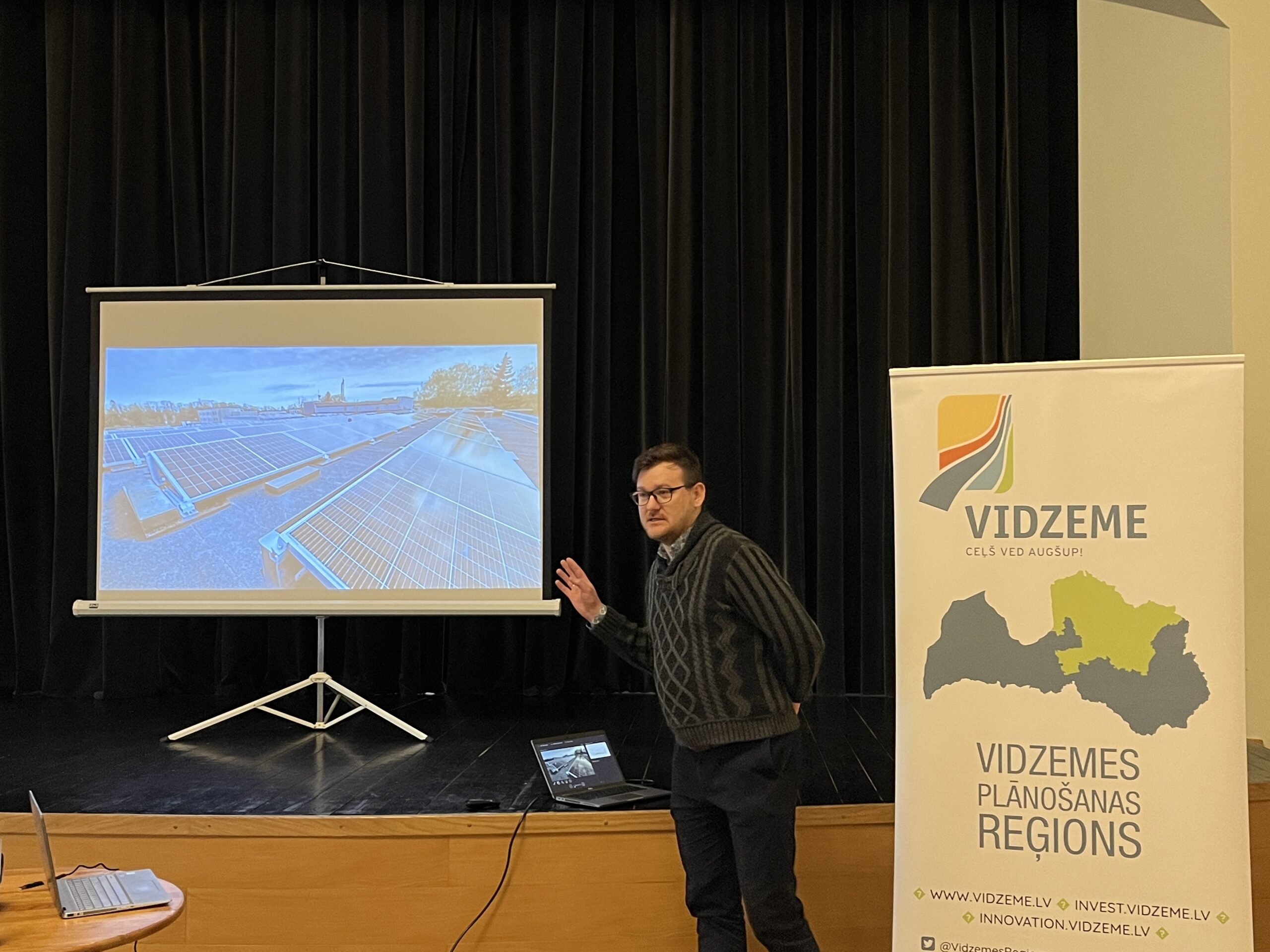 Semināra otrajā daļā Gulbenes novada pašvaldības speciālists Krišjānis Upāns dalībniekus iepazīstināja ar platformu “Energy Equilibrium” (latviski “Enerģijas līdzsvara platforma”), kas izveidota ar mērķi atbalstīt pašvaldības un enerģijas piegādātājus lēmumu pieņemšanā, paātrinot vietējo atjaunīgo energoresursu izmantošanu un attīstot piemērotas enerģijas akumulācijas infrastruktūras. Šis projekts tiek finansēts no Interreg Baltijas jūras reģiona projekta ”Carbon driver energy equilibrium at the municipal scale (Energy Equilibrium) (Oglekļa vadītas enerģijas līdzsvars pašvaldības mērogā (Enerģijas līdzsvars)”, Projekta nr. #C027.” Papildus informācija pieejama projekta mājas lapā www.interreg-baltic.eu/project/energy-equilibrium-interreg-baltic-sea-region/
