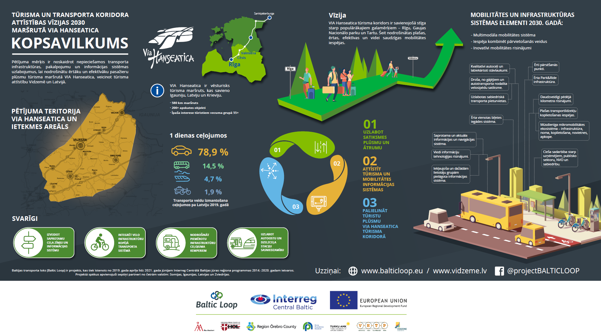 Projekta Baltic Loop ietvaros tika izstrādāta maršruta VIA Hanseatica tūrisma un transporta koridora attīstības vīzija 2030. gadam. Pētījumam ir divas daļas – esošās situācijas analīze un stratēģiskais ietvars.