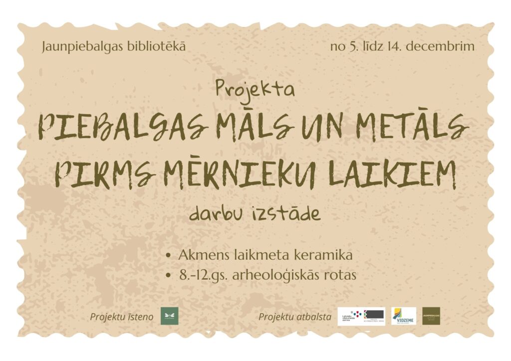 Projekta “Piebalgas māls un metāls pirms Mērnieku laikiem” noslēguma darbu izstāde notiks Jaunpiebalgas bibliotēkā no 5. līdz 14.decembrim.