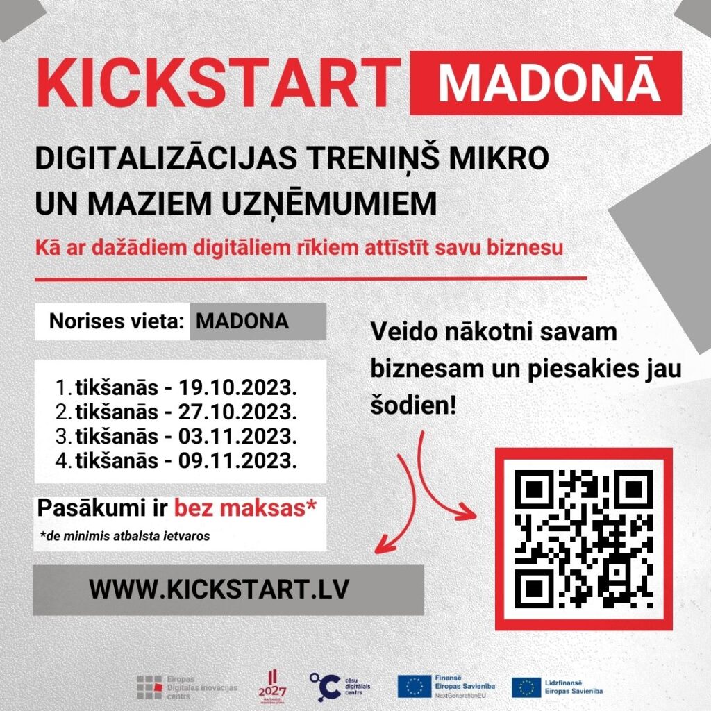 Dalība “Kickstart” treniņos notiek bez maksas, de minimis atbalsta ietvaros. Treniņi notiek Madonā, un uz tiem var pieteikties uzņēmēji no visām Latvijas pilsētām.
