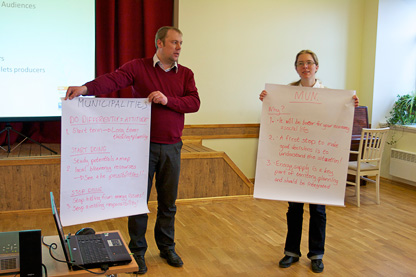 Projekta dalībnieki prezentē idejas komunikācijas procesam.