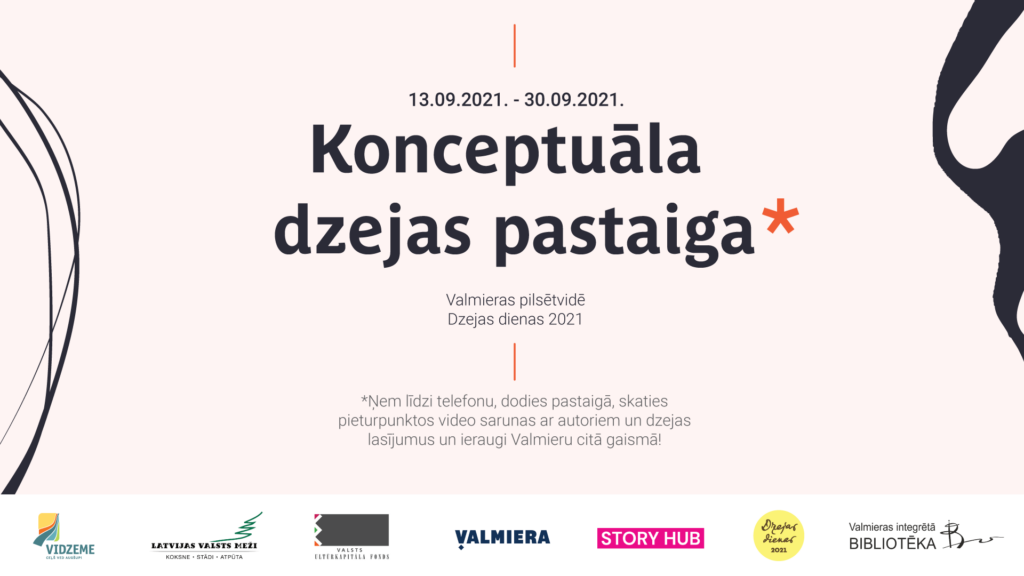 No š. g. 13.septembra ikvienam interesentam ir iespēja doties “Konceptuālā dzejas pastaigā”, iepazīstot Valmieras pilsētvidi ar konceptuālās dzejas starpniecību.