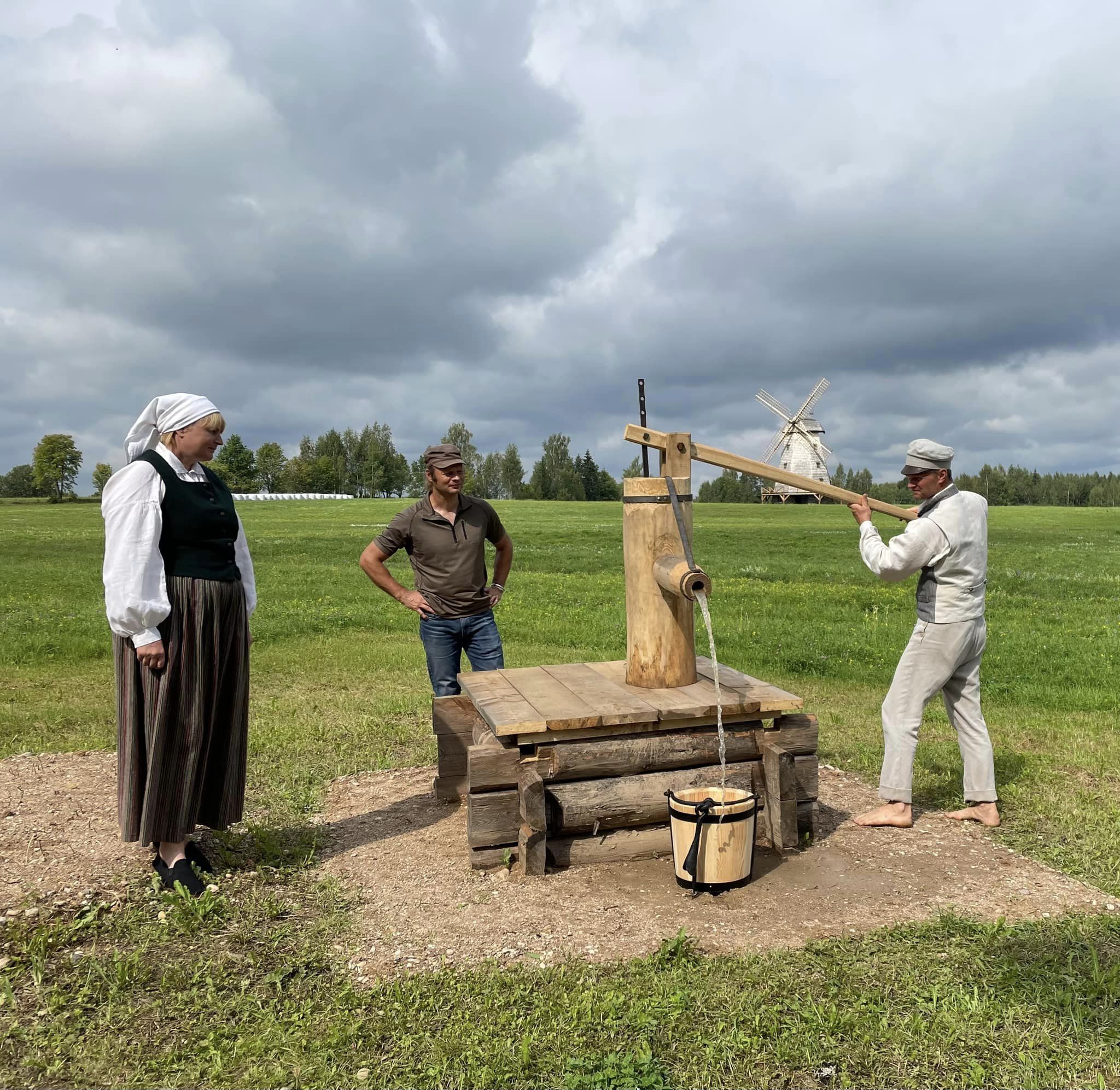 Jūlijā tik sagādāti nepieciešamie kokmateriāli un metāla daļas, lai varētu izgatavot un uzstādīt koka ūdens sūkni (pumpi). Augustā, pētot pumpenieku amatu un eksperimentējot, tika izgatavots un uzstādīts uz Kalna Vēveru akas koka ūdens sūknis. Projekta īstenošanu noslēdza Piebalgas pumpenieku dienas pasākums Vecpiebalgas Vēveros. Tās ietvaros dr. hist. Mārtiņš Kuplais populārzinātniskā lasījumā “Ūdens lauku sētā” sniedza ieskatu gan par pumpenieku amata vēsturi, gan ūdens apgādes attīstību. Pasākuma apmeklētājiem bija iespēja noskatīties Latvijas Etnogrāfiskā brīvdabas muzeja dokumentālās “Sakarības” un “Pēdējais Piebalgas pumpenieks”, kā arī vērot un pašiem izmēģināt spēkus koka ūdens cauruļu izgatavošanā. Pumpenieku dienas ietvaros tika atklāts no jauna izgatavotais koka ūdens sūknis (pumpis), kura darbināšana īpašu prieku sagādāja gados jaunākajiem apmeklētājiem. Ieskats projekta realizācijas noslēguma pasākumā >> šeit.