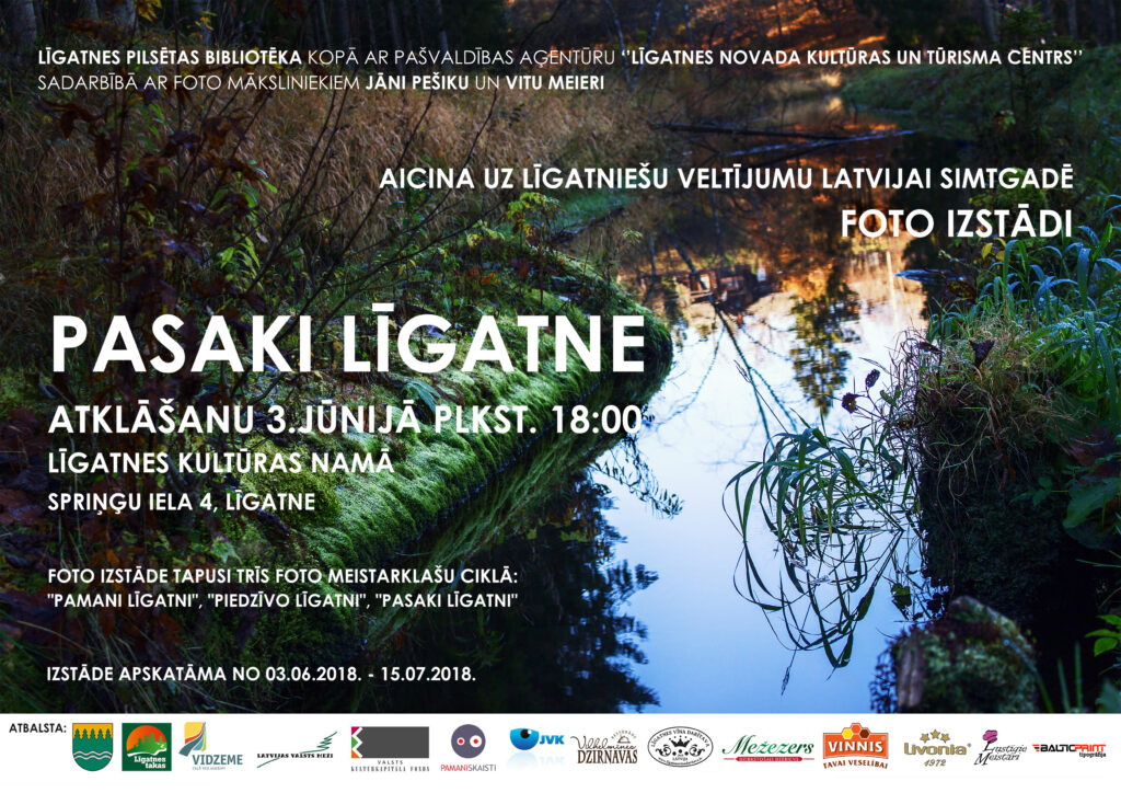 Pašvaldības aģentūra “Līgatnes novada Kultūras un tūrisma centrs” sadarbībā ar fotomāksliniekiem Jāni Pešiku un Vitu Meieri veido līgatniešu veltījumu Latvijai simtgadē – mākslas fotogrāfiju izstādi “Pasaki Līgatne”, kuru atklās Līgatnes kultūras namā, 3.jūnijā plkst. 18:00. Fotogrāfijas tapušas trīs meistarklašu ciklā: “Pamani Līgatni”, “Piedzīvo Līgatni” un “Pasaki Līgatni”, kurās piedalījās aktīvi Līgatnes novada iedzīvotāji.