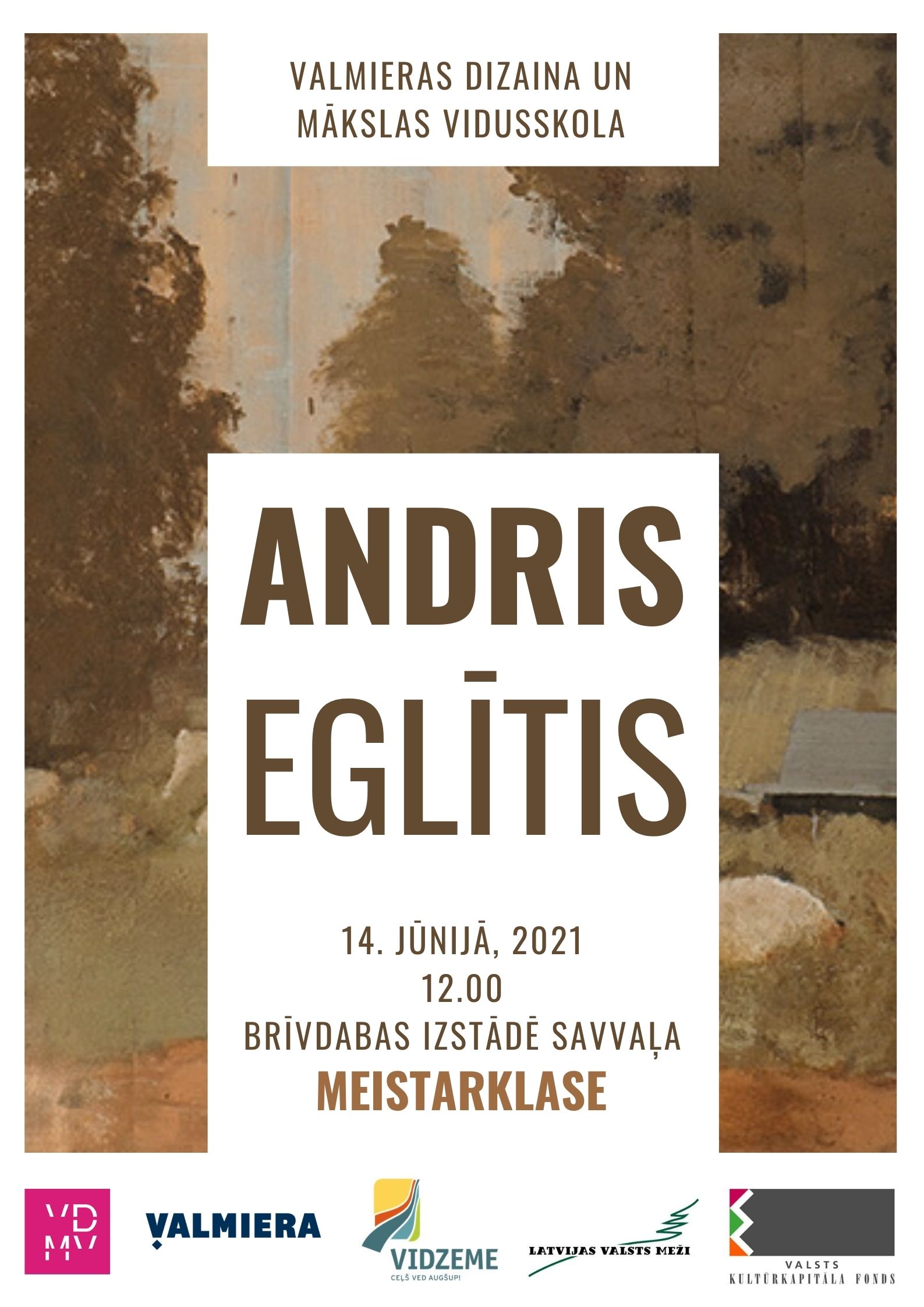 Meistarklasēs piedalīsies Valmieras Dizaina un mākslas vidusskolas (VDMV) profesionālās vidējās izglītības programmas 20 izglītojamie, kuri apgūst prof. vidējās izglītības programmas: “Apģērbu dizains”, “Reklāmas dizains”, “Interjera dizains” un “Multimediju dizains” un profesionālā priekšmeta pedagogi: I. Lapiņa-Strazdīte, G. Karāne, I. Cālīte, K. Vītiņa, L. Uzulēna un P. Rozītis. Gleznošanas meistarklases laikā izglītojamie iepazīsies ar gleznotāju, LMA Glezniecības katedras vadītāju un docentu Andri Eglīti, tā radošo darbību, orģināldarbiem, apgūs dažādas mākslas darbu radīšanas tehnikas zemes toņu glezniecībā, iepazīsies ar laikmetīgo mākslu un konceptuālo mākslu. Video mākslas meistarklases laikā izglītojamie iepazīsies ar scenogrāfi un video mākslinieci Katrīnu Neiburgu, tās radošo darbību, apskatīs publiski nepieejamus video darbus, apgūs dažādas video mākslas darbu radīšanas tehnikas, papildinās zināšanas scenogrāfijā un režijā, iepazīsies ar laikmetīgo mākslu un konceptuālo mākslu. Meistarklases norisināsies mākslinieka A. Eglīša darbnīcā un brīvdabas izstādē “SAVVAĻA”, kuru atklās 12. jūnijā. Izstādes apmeklējums plānots kā pārgājiens, kura laikā iepazīsies ar laikmetīgās mākslas darbiem brīvdabā. Jāatzīmē, ka Izstādē “SAVVAĻA” 2020. gadā ir izstādīti 18 latviešu un ārzemju laikmetīgo mākslinieku darbi – šogad izstāde tiek paplašināta ar vēl 21 jaunradītu mākslas objektu. Izglītojamie gleznos iepazīstot zemes toņu glezniecību, papildus fotografēs dabu un darbu radīšanas procesu, radītās gleznas autortehnikā eksponēs mākslas darbu izstādē VDMV galerijā K2 un vestibilā septembrī un oktobrī.