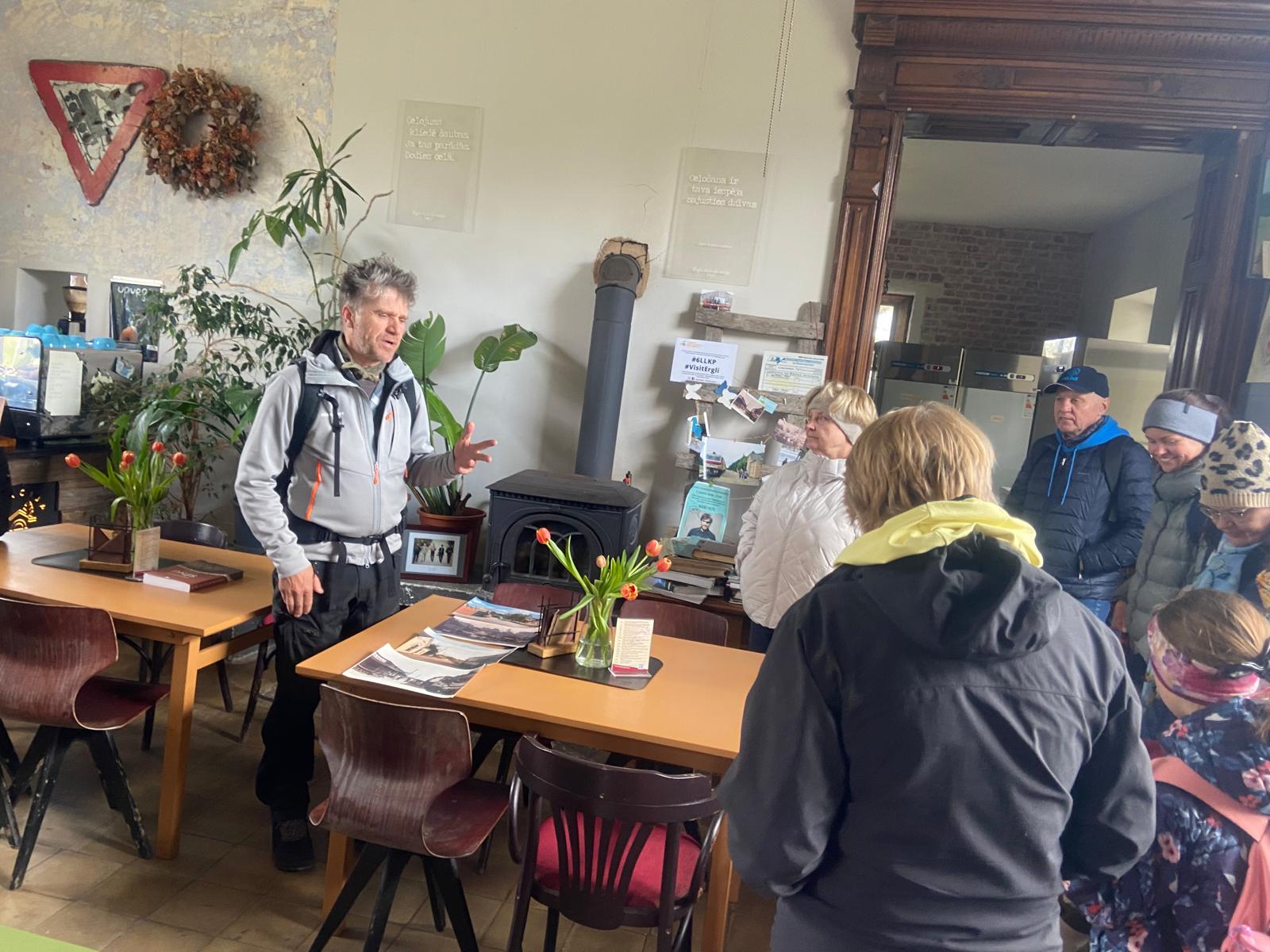 Pārgājiens sākās pie Ērgļu stacijas, kur dalībniekus sagaidīja šīs vietas saimnieks, biologs Māris Olte ar paša gatavotu kafiju – silta un patiesi gardā dzēriena krūze bija tieši tas, kas vajadzīgs pirms došanās ceļā. Sākotnēji plānotā četru kilometru pastaiga pārtapa par teju 14 kilometru ilgu piedzīvojumu. Takas veda gar Ogres upīti, cauri mežiem un pļavām. Ceļā varēja ne tikai klausīties stāstos par dabu, bet arī vērot savvaļas zirgus, govis, ieraudzīt dzīvnieku pēdas, dažādus ārstniecības augus.