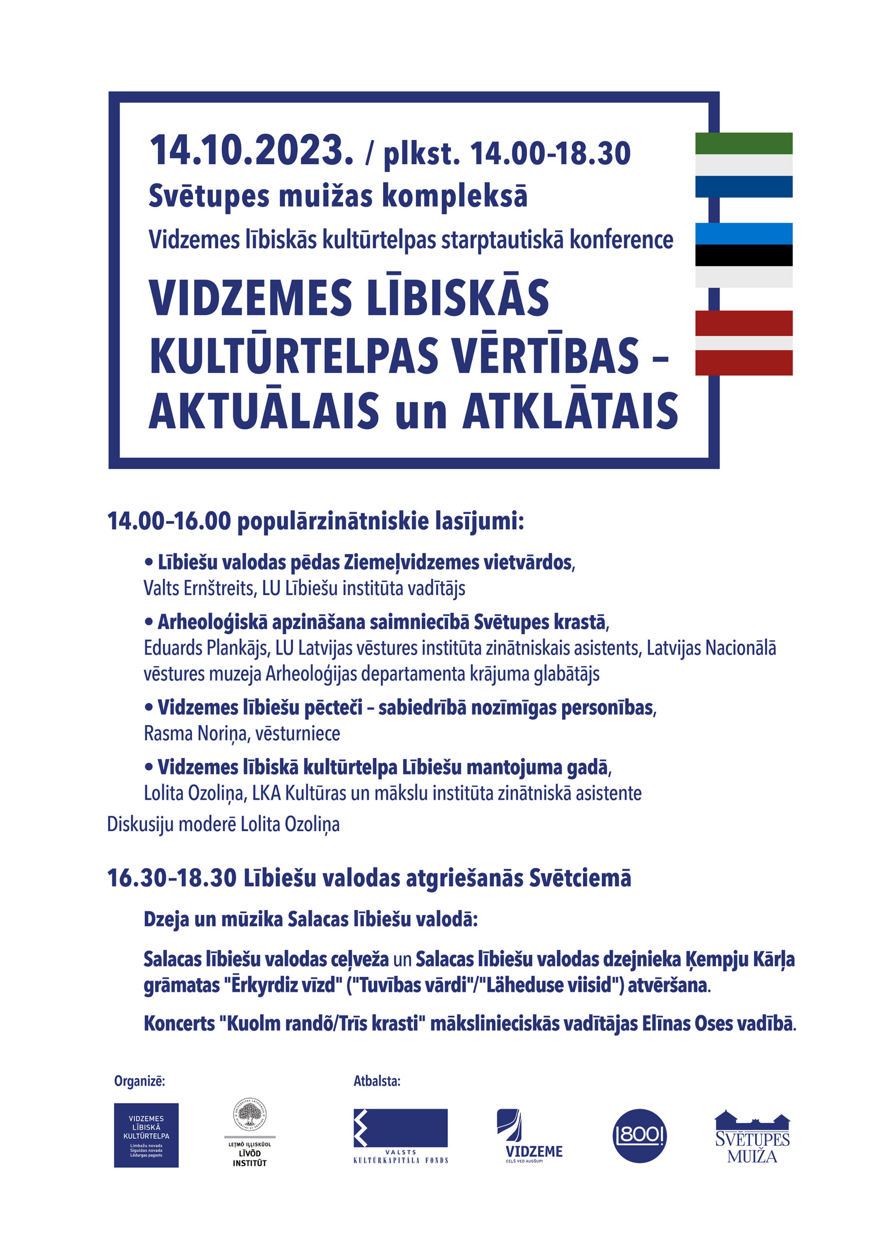 Konferenci organizē Vidzemes lībiskā kultūrtelpa sadarbībā ar LU Lībiešu institūtu.