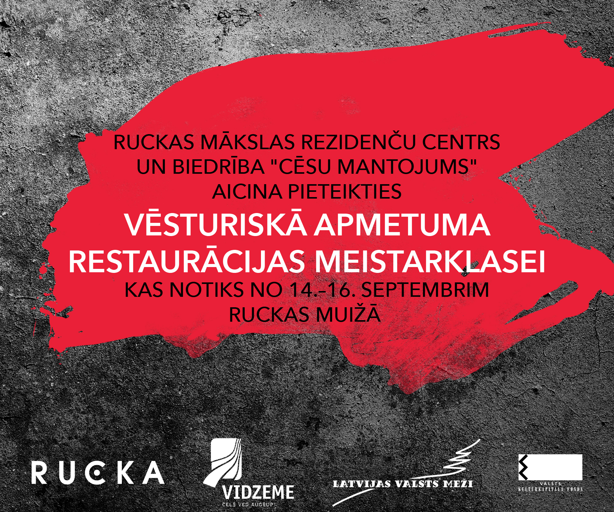 Ruckas mākslas rezidenču centrs sadarbībā ar biedrību “Cēsu mantojums” aicina pieteikties “Vēsturiskā apmetuma restaurācijas meistarklasei”, kas notiks no 14.-16. septembrim Cēsīs Ruckas muižā.