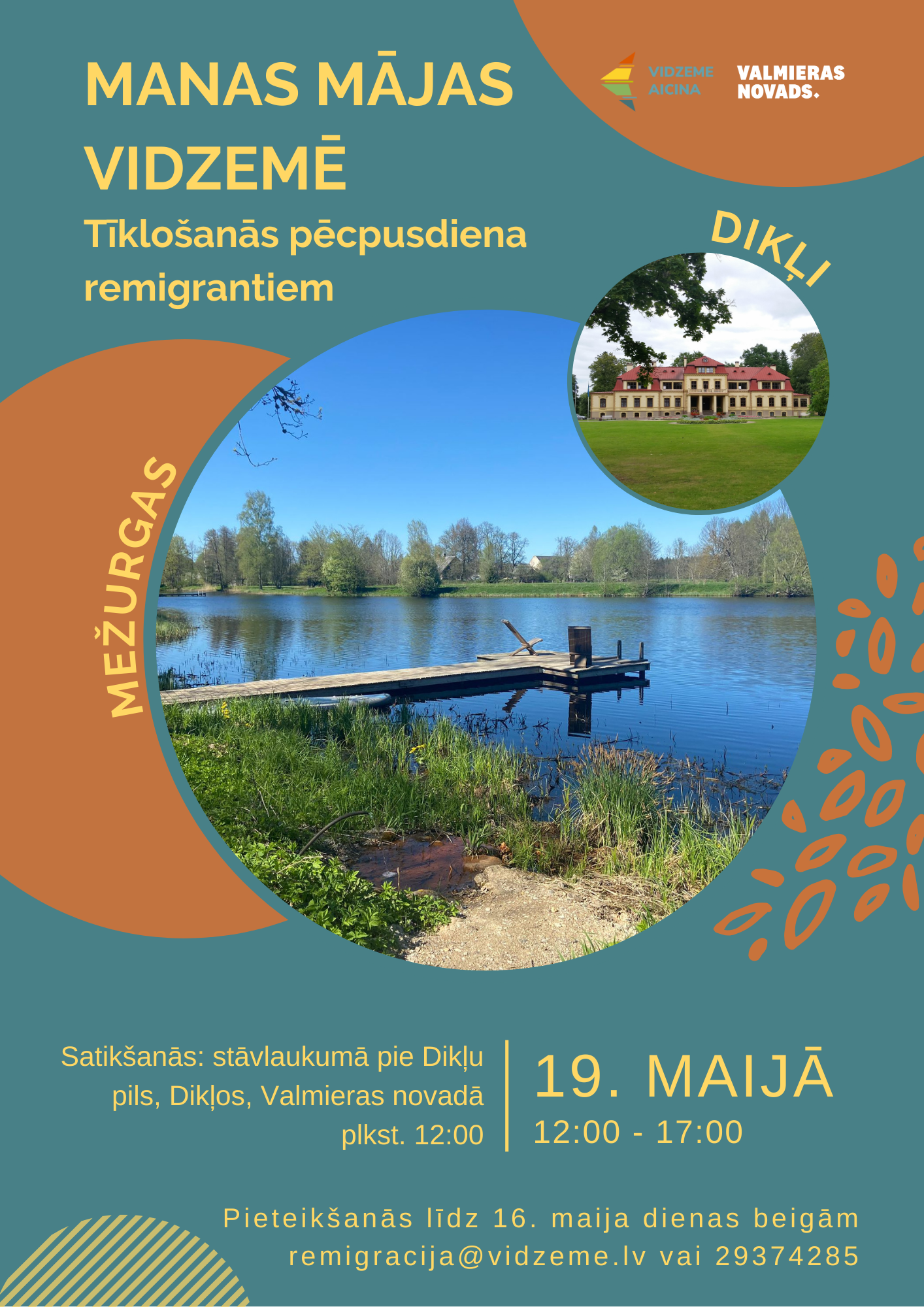 Turpinām tīklošanās pēcpusdienas remigrantiem “Manas mājas Vidzemē” ar mērķi sniegt atbalstu, atgriežoties Vidzemē. Šoreiz aicinām izbaudīt Vidzemes dabas skaistumu un piedzīvojumus Dikļu pusē! Pasākumā aicinātas piedalīties ne tikai remigrantu ģimenes, bet arī Vidzemes pašvaldību remigrācijas speciālisti, dodos iespēju neformālā gaisotnē satikties un pārrunāt aktuālos jautājumus.