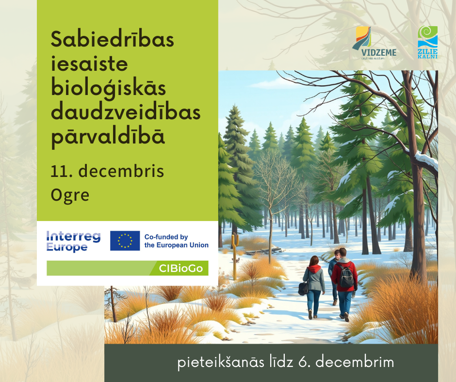 11.decembrī aicinām sadarbības partnerus uz projekta CIBioGo “Sabiedrības iesaiste bioloģiskās daudzveidības pārvaldībā” iesaistīto pušu tikšanos, kas norisināsies Ogrē.