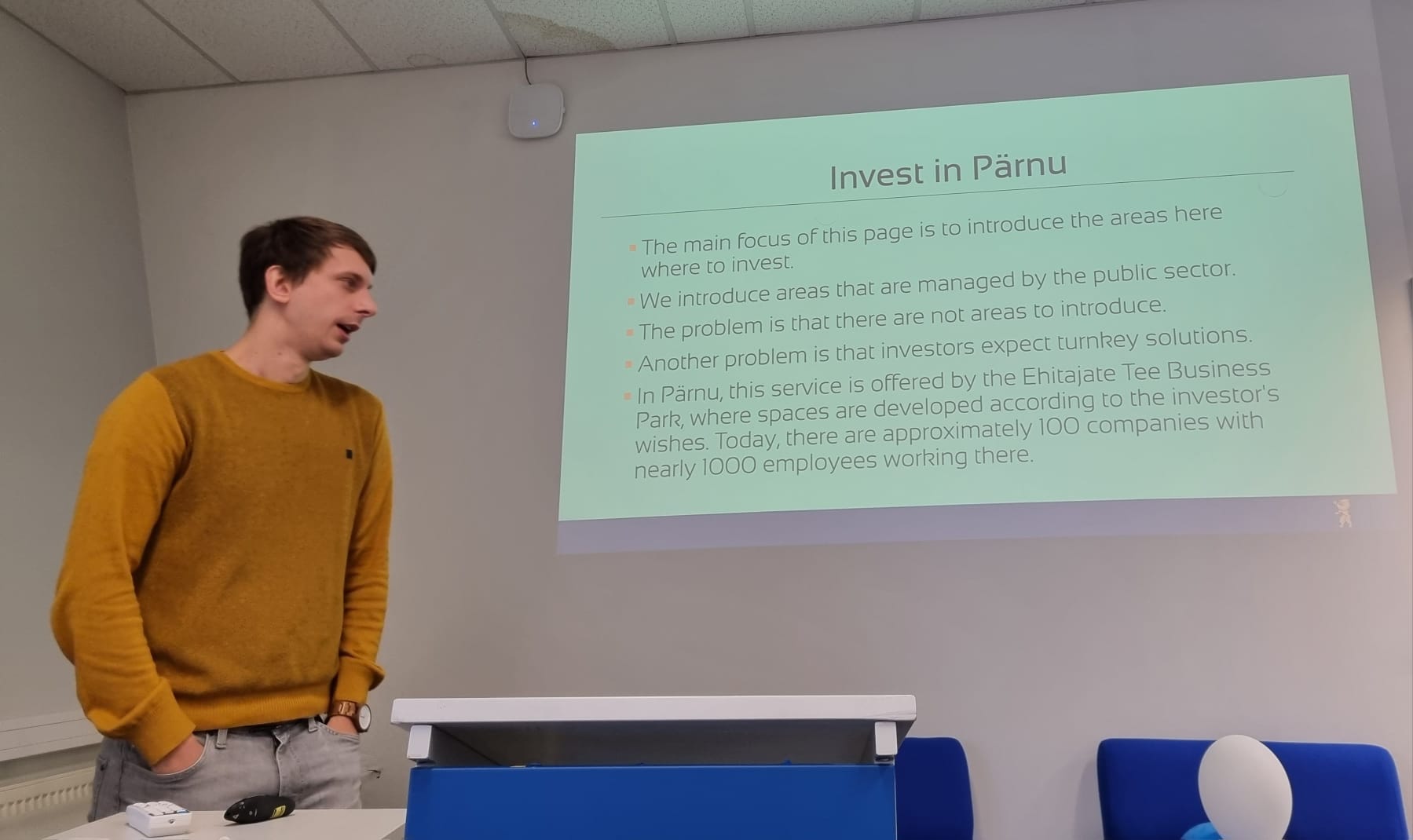 Turpmākajā dienas gaitā Ains Hinsbergs, Pētniecības un attīstības biroja projektu vadītājs iepazīstināja ar Tartu Universitātes Pērnavas koledžu un tās piedāvātajām iespējām. Viņš pastāstīja par koledžas sadarbību ar Pērnavas attīstības centru, kā arī iepazīstināja ar biznesa inkubatora darbības principiem.