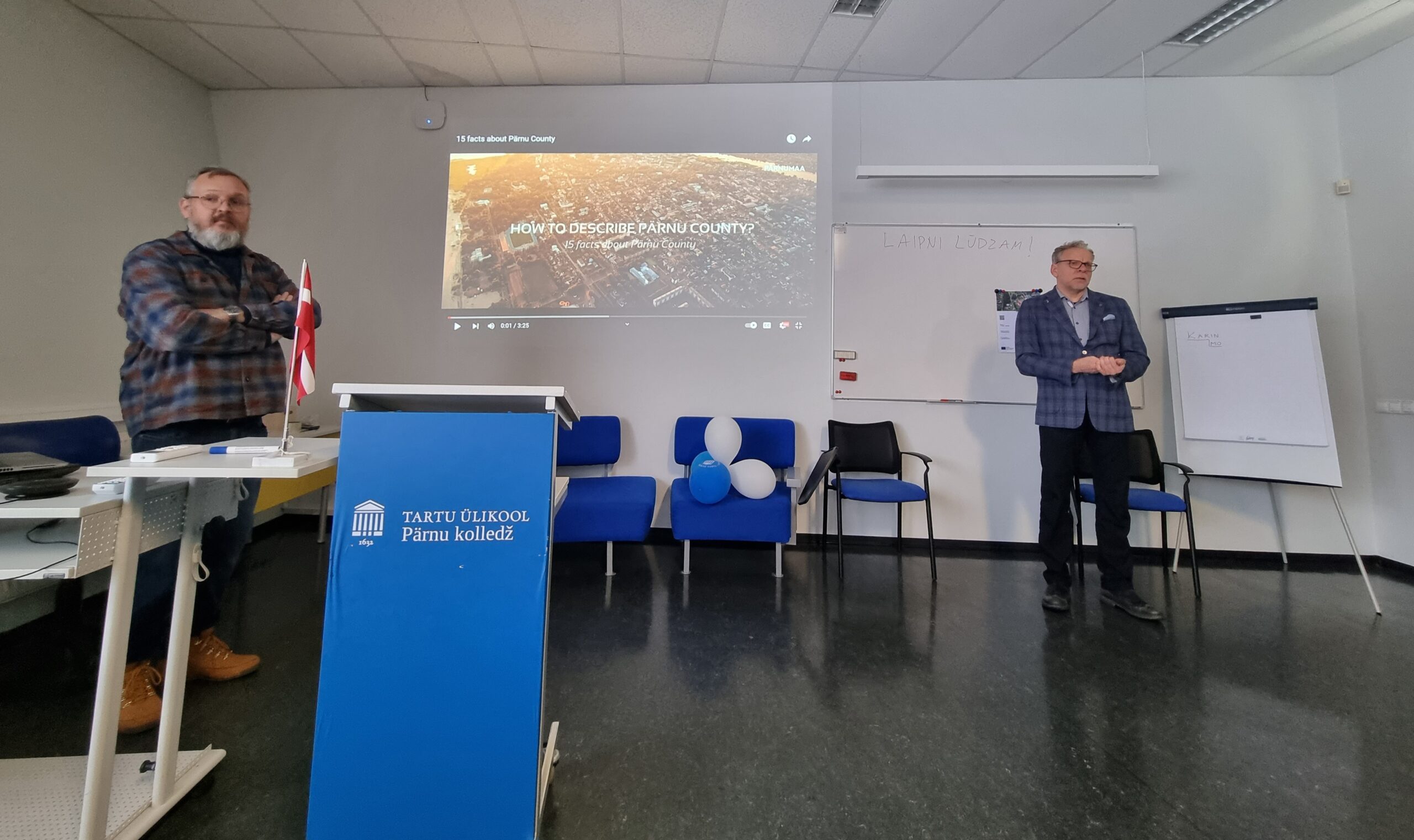 Vizītes dalībnieki viesojās Tartu universitātes Pērnavas koledžā, kur notika tikšanās un sarunas ar Pērnavas apriņķa attīstības centra vadītāju un Vietējo pašvaldību asociācijas Pērnavas pašvaldības valdes locekli Ēriku Reinholdu.