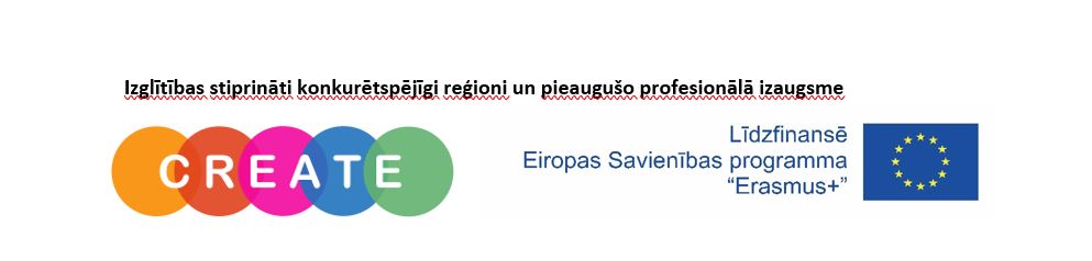 Vairāk informācijas: Maija Rieksta, projekta CREATE vadītāja Vidzemes plānošanas reģionā, mob.t. +371 26099521, maija.rieksta@vidzeme.lv