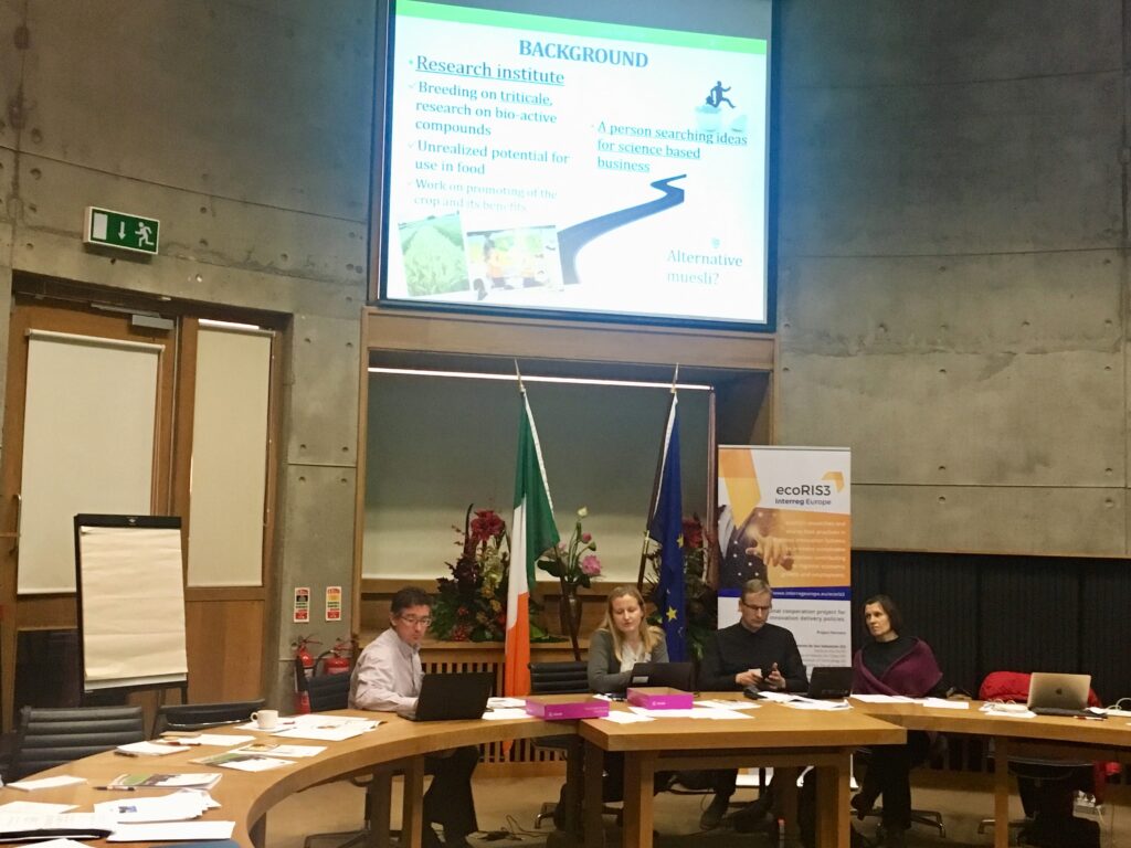 No 28. līdz 29. novembrim programmas “Interreg Europe” projekta EcoRIS3 pārstāvji piedalījās pieredzes apmaiņas vizītē Īrijas pilsētā Korkā, lai iepazītu un salīdzinātu labās prakses pieredzes stāstus no partnervalstīm par zinātnes un pētniecības centru, kā arī augstākās izglītības iestāžu lomu sadarbībā ar uzņēmumiem zināšanu un izgudrojumu pārnesē un komercalizēšanā viedo specializāciju jomās. Darba grupa diskutēja par priekšrocībām un trūkumiem inovāciju vidē partnervalstīs un to, kādi ir galvenie izaicinājumi, lai mazie un vidējie uzņēmumi veiksmīgāk izmantotu pētniecību savas attīstības veicināšanai.