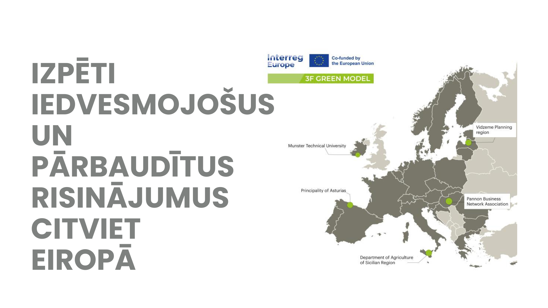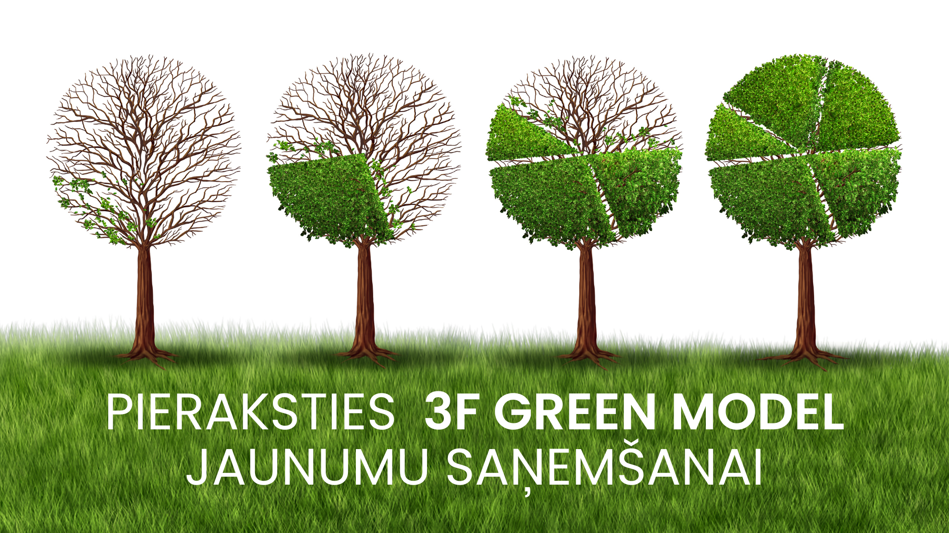 Projekta “Nākotnes modeļi pārtikas un mežsaimniecības sektora vērtību ķēžu adaptācijai Eiropas zaļajam kursam un aprites ekonomikai” (3F GREEN MODEL) mērķis ir partneru politikas instrumentu uzlabošana, tādējādi risinot izaicinājumus, kas saistīti ar partnervalstu lauksaimniecības un mežsaimniecības nozaru pielāgošanu Eiropas zaļajam kursam un ES aprites ekonomikas stratēģijai, padziļinātāk un apzinātāk piemērojot aprites ekonomikas principus bioloģiskajiem atkritumiem un blakusproduktiem, kas rodas lauksaimniecības un mežsaimniecības vērtību ķēdēs, ņemot vērā atšķirīgos ES bioklimatiskos apstākļus un ražošanas struktūras.