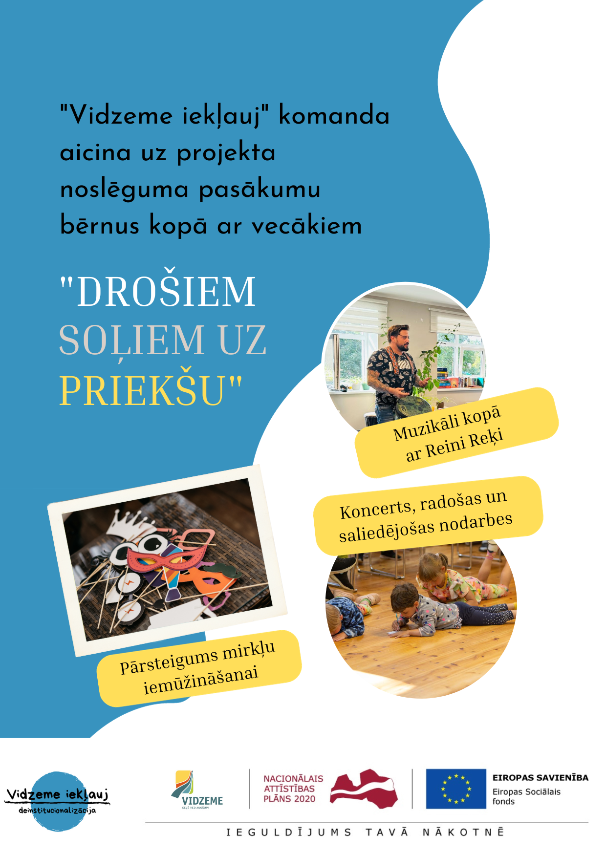 Deinstitucionalizācijas ietvaros tiek plānota sociālās aprūpes iestādēs mītošo klientu vajadzību izpēte un individuālajām vajadzībām atbilstošas infrastruktūras un pakalpojumu attīstība pašvaldībās, speciālistu apmācība jaunu pakalpojumu sniegšanā, kā arī dažādi citi pasākumi, lai pārtrauktu klientu ievietošanu institūcijās, piedāvājot alternatīvus pakalpojumus. Jāpiemin gan, ka sagatavot dzīvei sabiedrībā paredzēts tikai tos klientus, kuri, saskaņā ar novērtēšanas komisijas atzinumiem, būs spējīgi uzsākt patstāvīgu dzīvi ārpus sociālās aprūpes iestādēm. Projektu noslēdzās 2023. gada beigās.
