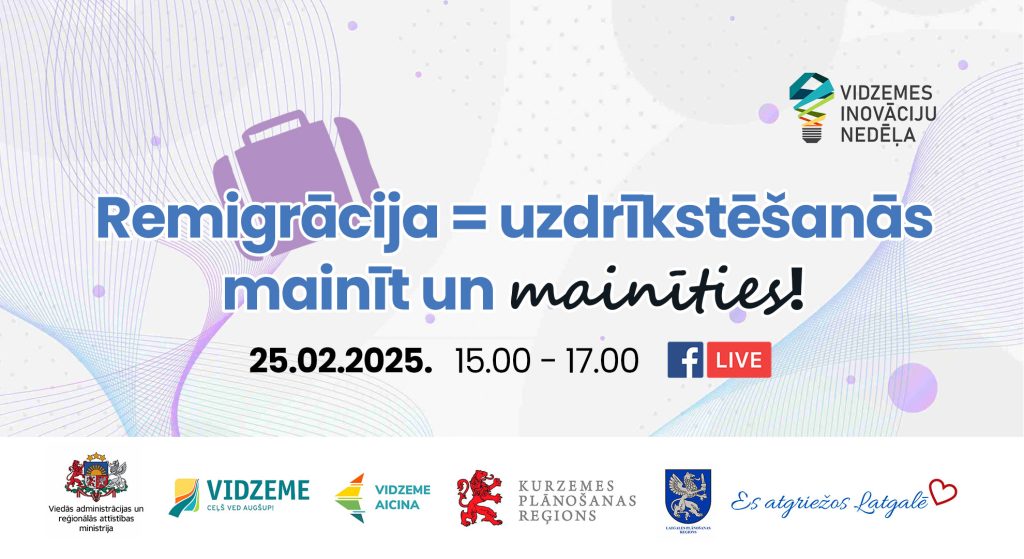 Ja esi remigrants, Tu esi drosmīgs – Tu esi pieņēmis izšķirošus lēmumus vismaz divas reizes savā dzīvē: dodoties uz ārzemēm un atgriežoties mājās. Remigrācija ir cieši saistīta ar uzdrīkstēšanos un spēju pieņemt izaicinājumus! 2025.gada 25.februārī no 15:00 -17:00 Latvijas reģionālās remigrācijas koordinatores aicinās uz sarunu remigrantus, kuri, atgriežoties Latvijā un izmantojot remigrācijas atbalsta programmu, ir saņēmuši finansējumu sava biznesa uzsākšanai. Ielūdzam un iesakām būt kopā ar mums, vērojot pasākumu tiešraidē Facebook profilā “Es atgriežos Latgalē”! Jums būs iespēja šīs sarunas darbnīcas laikā dzirdēt vērtīgus pieredzes stāstus un iedvesmoties jauniem uzdrīkstēšanās un atgriešanās stāsties.